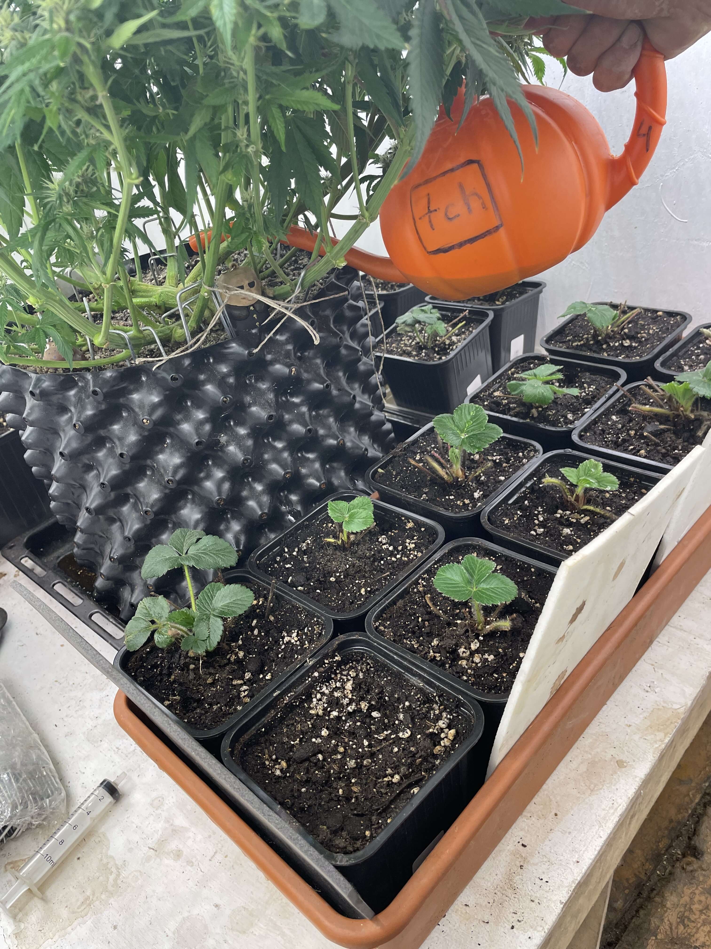 Да с бутылки не проблема полить, вертеть куст не удобно, я же его как на бдсм растягиваю, скобы веревочки, пока два стояли в кучу собирал и раздвигал, щас все куст к боксу привязан места валом)