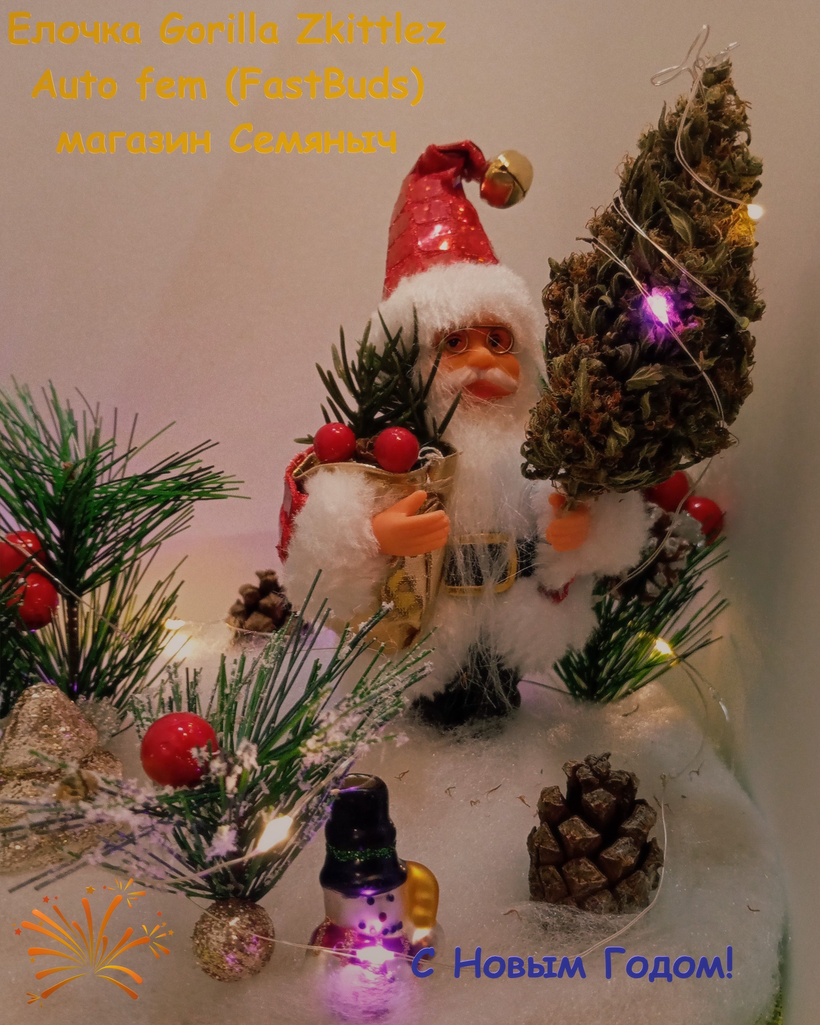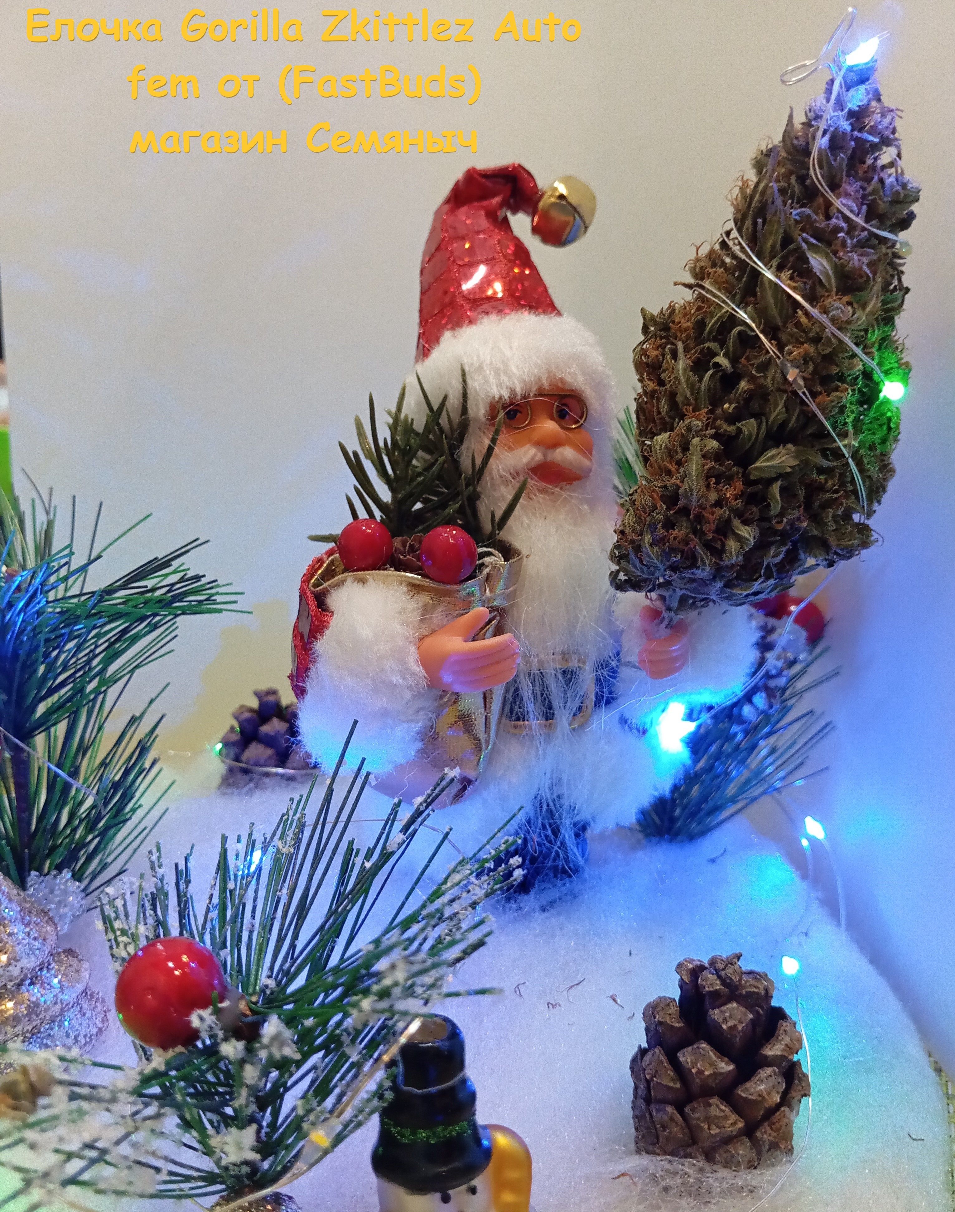 В связи с тем, что гров только в ближайших планах, нарядил уже срубленнуюелкушишку Gorilla Zkittlez Auto fem (FastBuds) от магазина Семяныч.