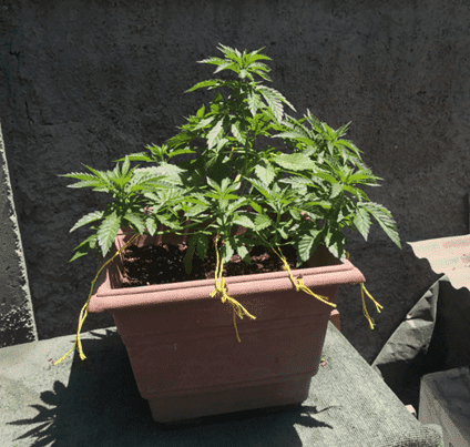 Вторая неделе ознаменовалась переходом рассады в стадию вегетации. Она начала активно набирать зеленую массу, увеличиваясь в размерах. На третьей неделе гровер развел второстепенные ветви растения в стороны и закрепил их с помощью веревок к краям горшка. В результате все макушки кроме главной получали одинаковое количество света. Они находились на одном уровне. Гровер продолжал давать стимулятор корнеобразования Deep Underground, а с середины второй недели стал давать удобрение Top Veg.