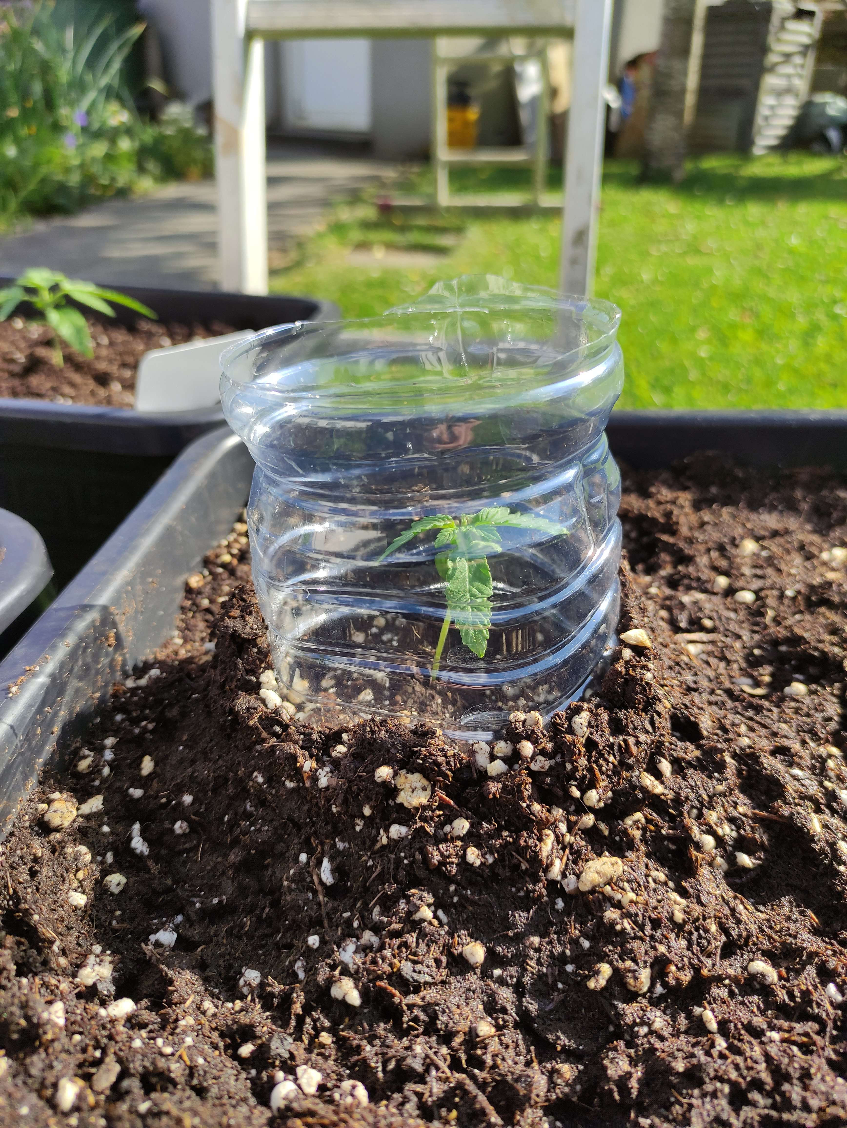 • Срезанная бутылка спасает от ветра, прямого солнца и тупых насекомых.