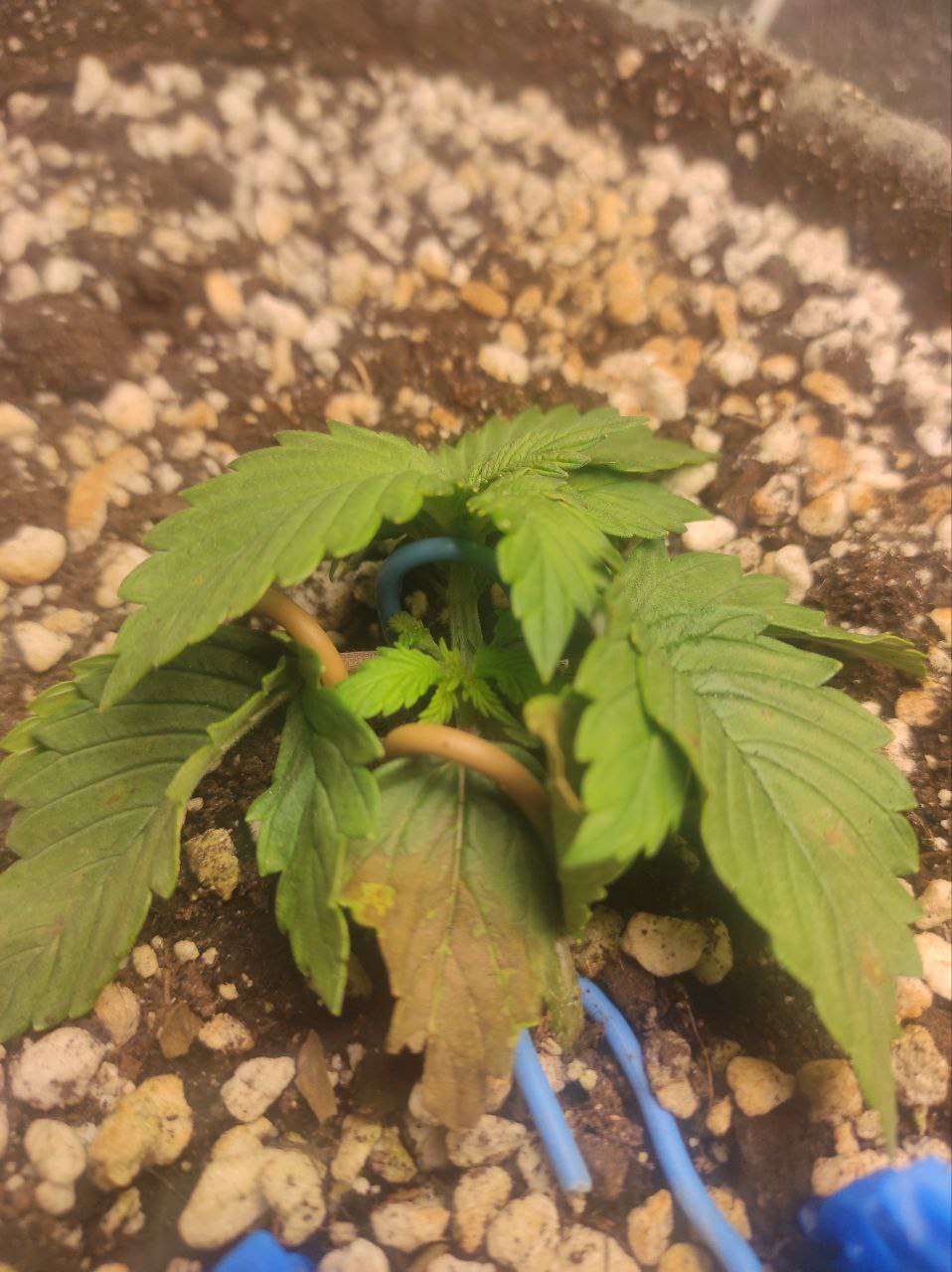 У Tangie на двух листьях появились коричневые пятна, и они быстро высохли. Думаю, это последствия полива с корневином — раствор попал на листья, я не придал этому значения, а зря. Но ничего критичного, ведь мы выращиваем не листья. Все новые листочки выглядят здоровыми, так что переживать особо не о чем.