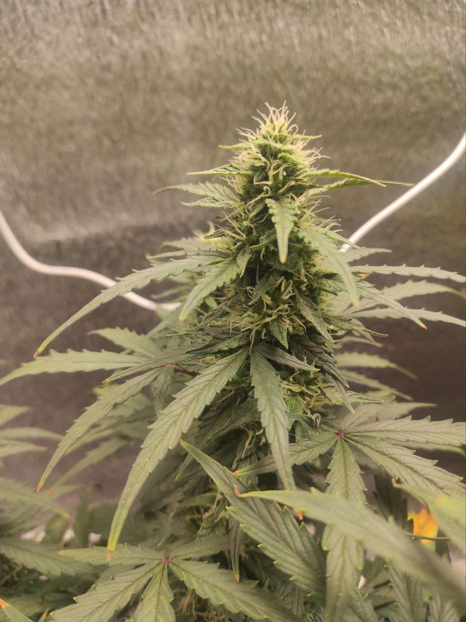 CBD отлично развивается. Шишки уже почти во всю длину кол. Поливаю через раз с удобрениями. PPM полив 1100, на выходе около 1000. Есть не большие признаки перекорма. Сделаю пару поливов без удобрений. PH тоее держится в норм.