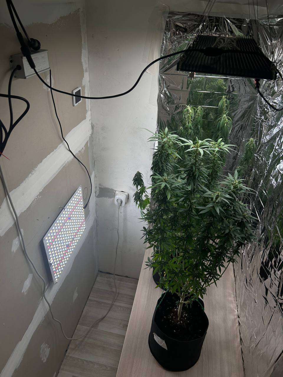 немного доделал бокс, докупил 2 борда по 120 вт на 301b диодах, свою же лампу поставил на досве, полностью убрал все запахи от кустов. Переживаю что мало кормлю, переживаю немного,а так в целом всё очень даже не плохо,срезаю большие листья для света.