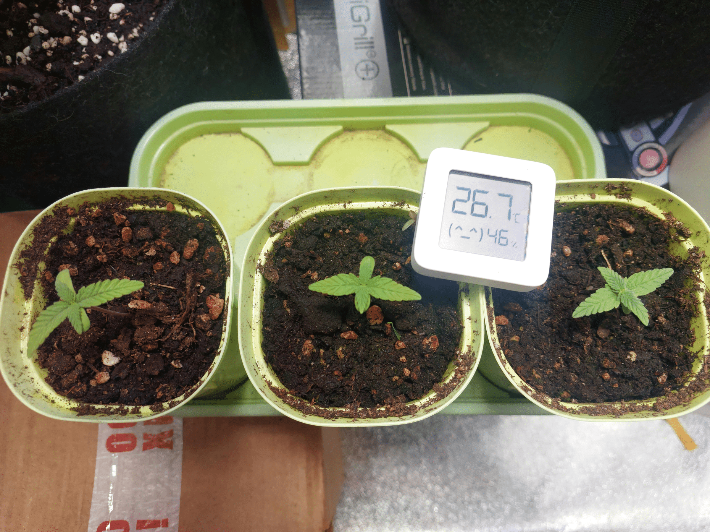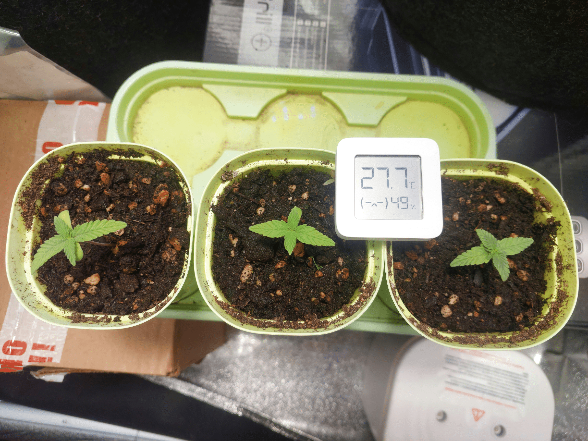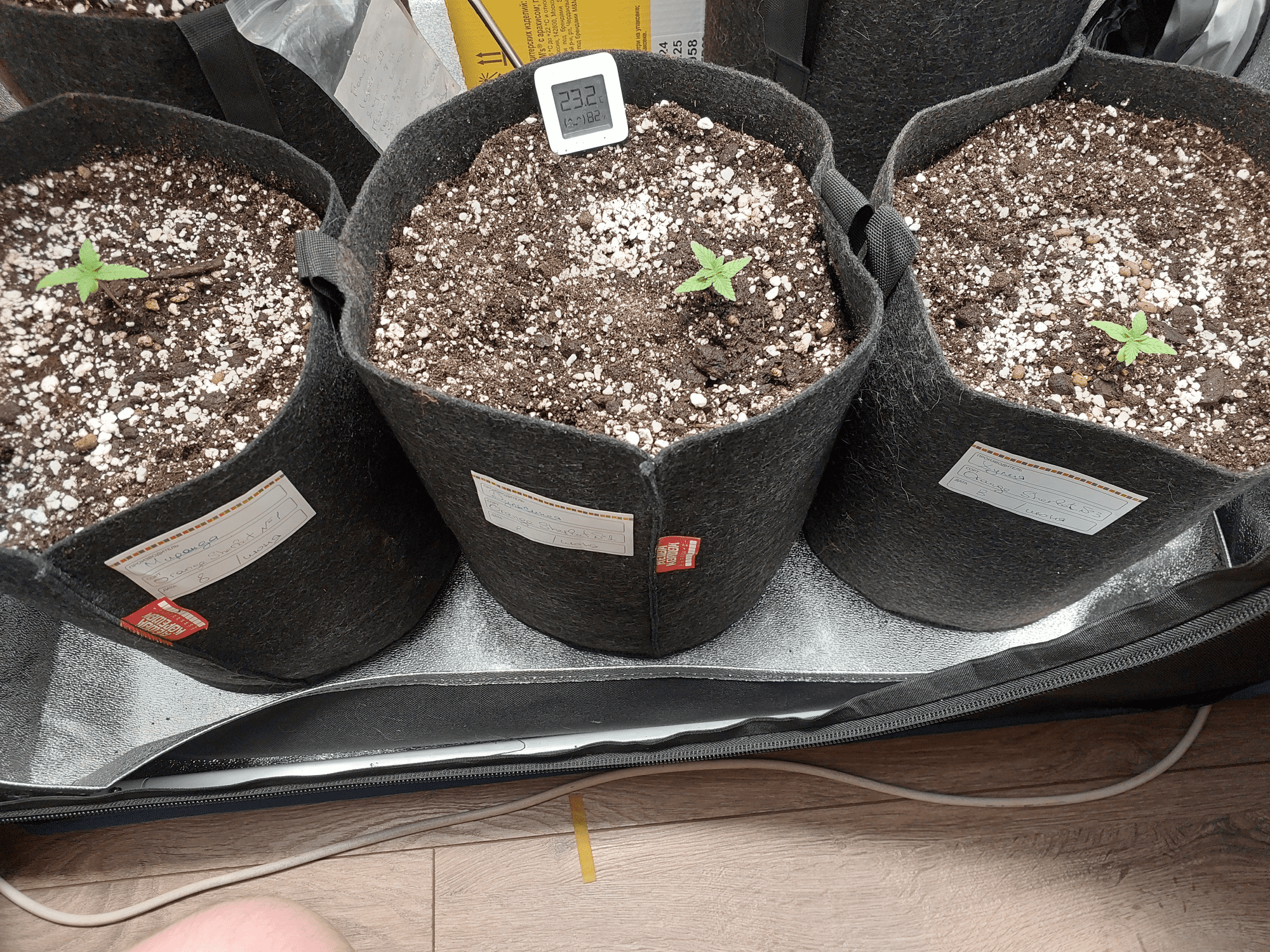 Пересадил малышек в 15-литровые дышащие горшки. Корни уже оплели весь низ стаканчиков для рассады. Закинул на дно лунок 2 чайные ложки микоризы и полил каждую по 0.5 л. воды с медом и удобрением на основе морских водорослей. Теперь им есть куда расти и радовать меня. Новый жизненный этап у них начался с наречения имен: Миранда, Дульсинея и Хулия. Они теперь личности, индивидуальности. Надеюсь они не сильно стрессанут и быстро освоятся:pray