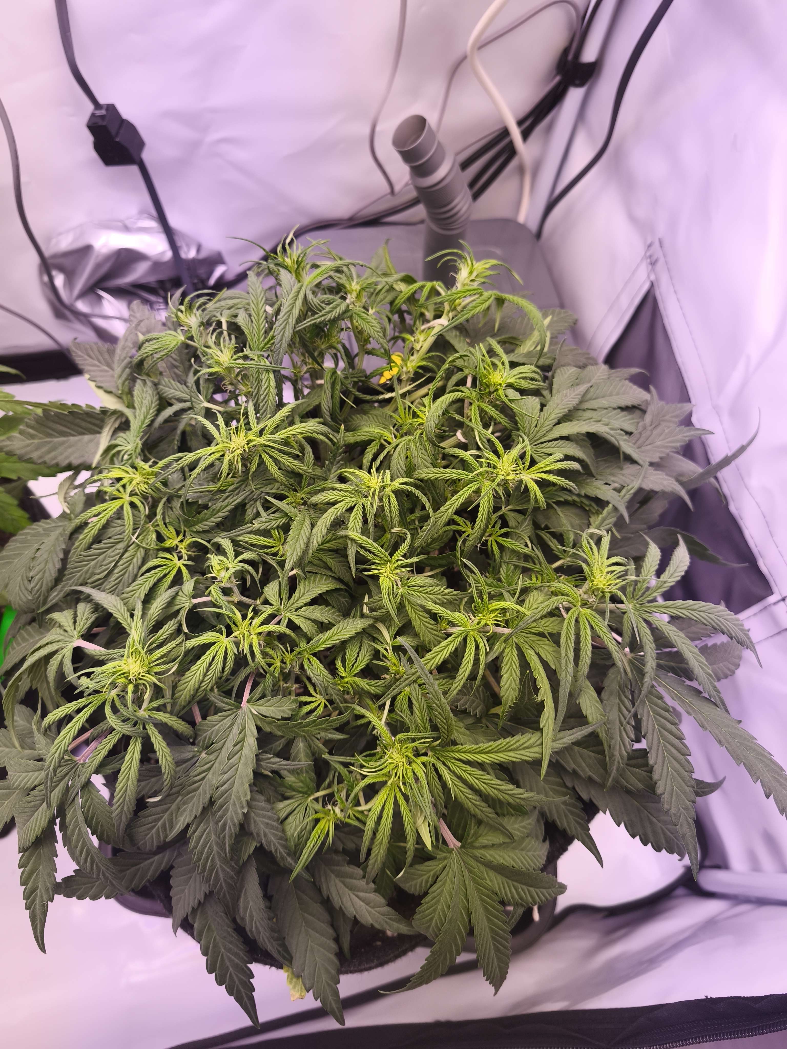 Настала 5 неделя. Зацвела в первый день, начинает подрастать, кормим, подгибаем веточки. Сменил световой режим на 20/4, так пойдем до конца, 35к люкс. Фото внизу )