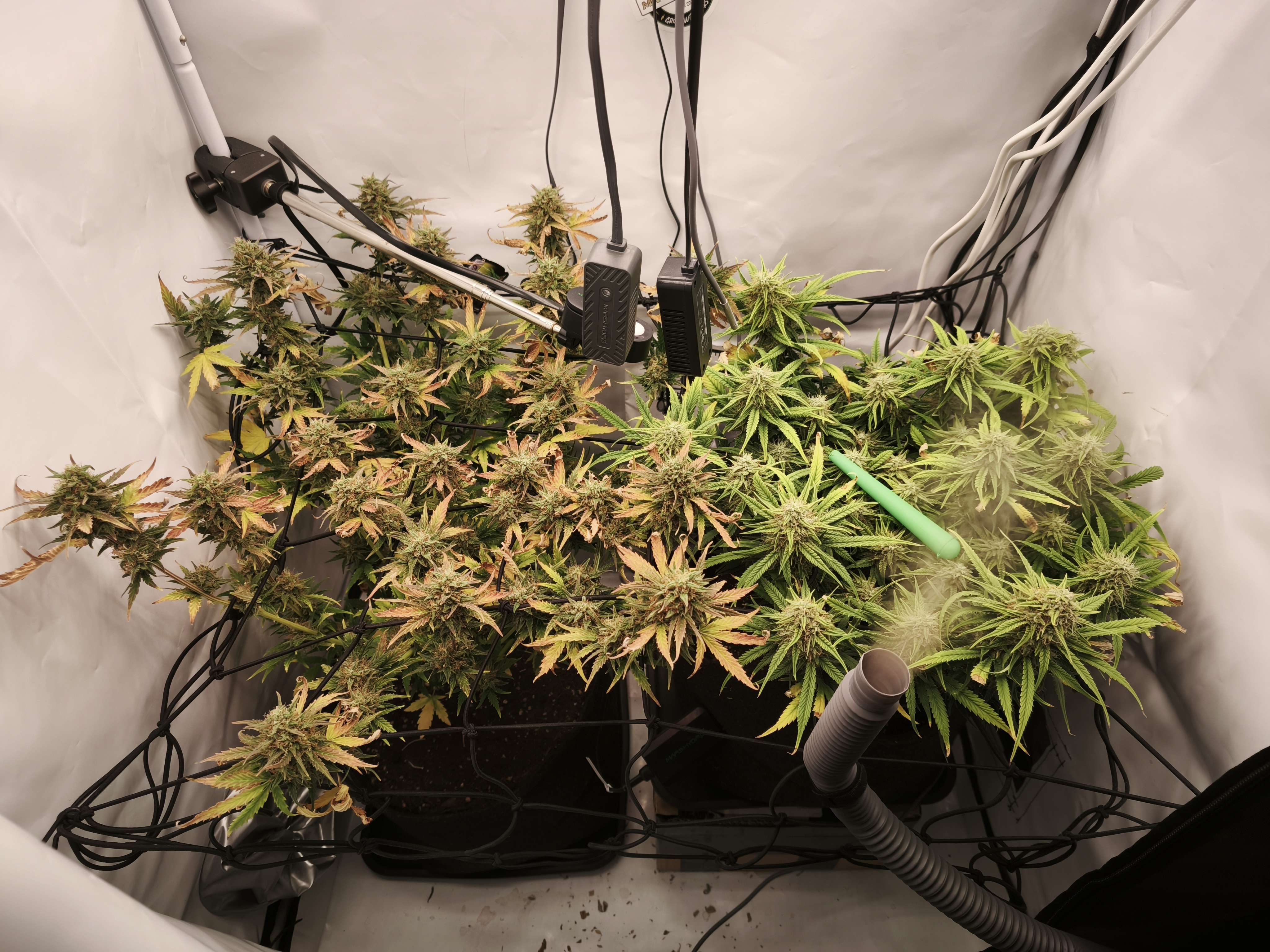 Подходит к концу 9 неделя. Дурбан в порядке, потихоньку набирает массу, скитолсу было плохо неделю, 3 полива чистой водой с выровненым PH, получается в боксе осень/лето. Скитлс только заканчивает 8 неделю, но выглядит вкусно, несмотря на ожоги на листьях, ну ничего, будет опытом. Фото ниже.