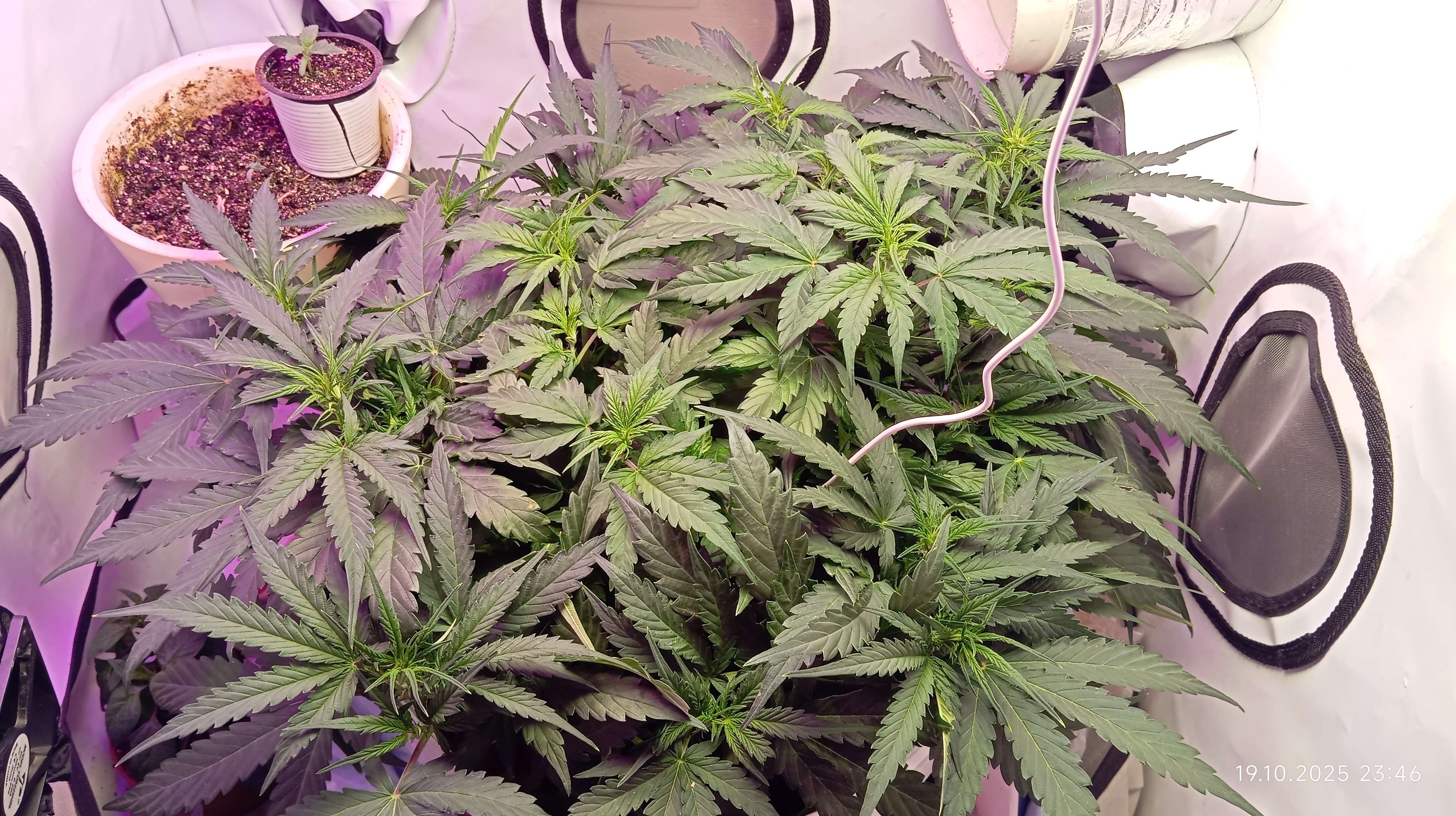 Здарова бро, а какой смысл гнуть, макухи вроде видят свет нормально. А вот цветения еще не видно, я ни одной стигмы на фото не увидел, ну может пол показала только, это предцвет считай, а цветение пойдет уже когда полноценная завязь будет. Но это не принципиально что как называть, выглядит норм