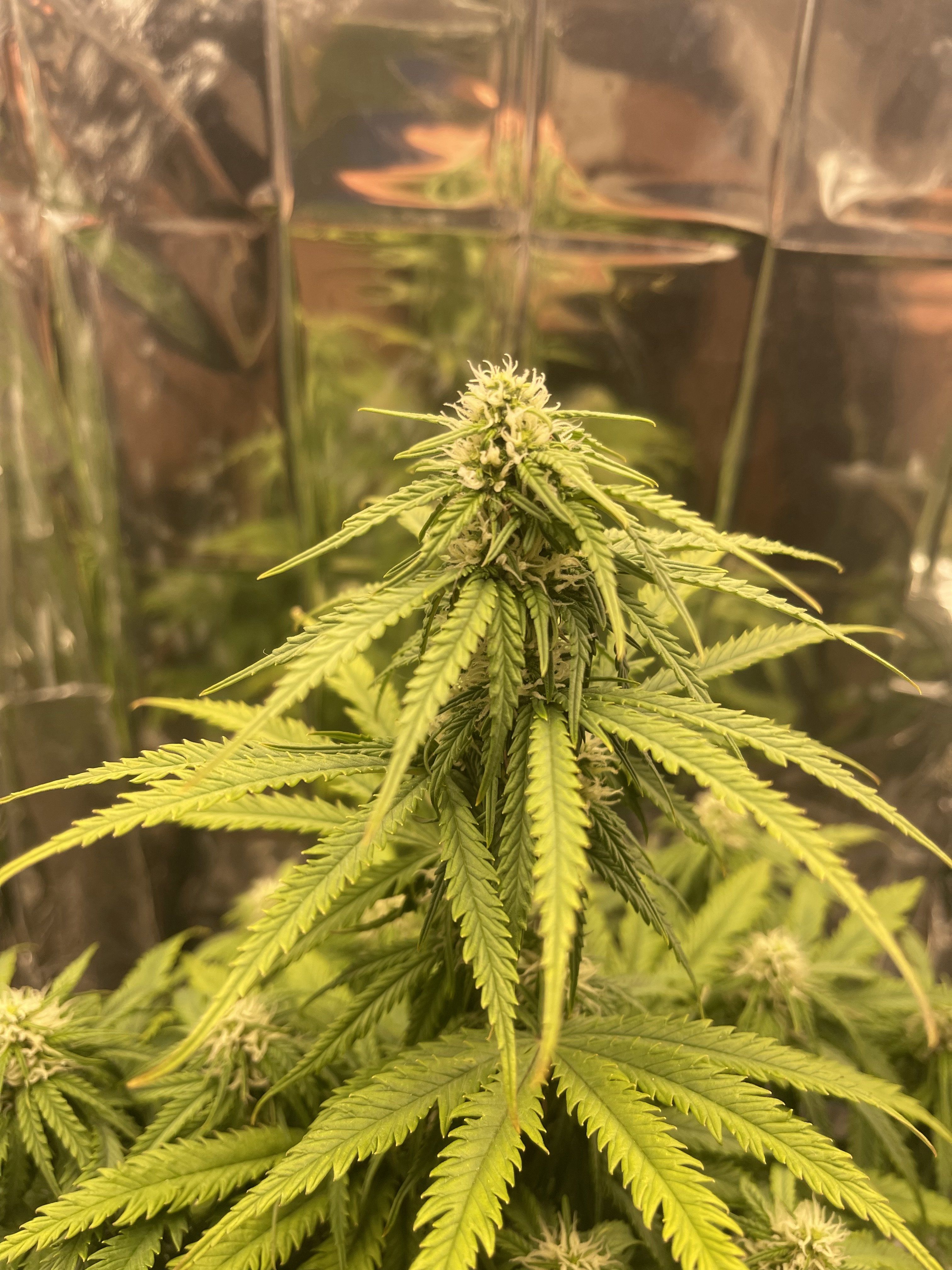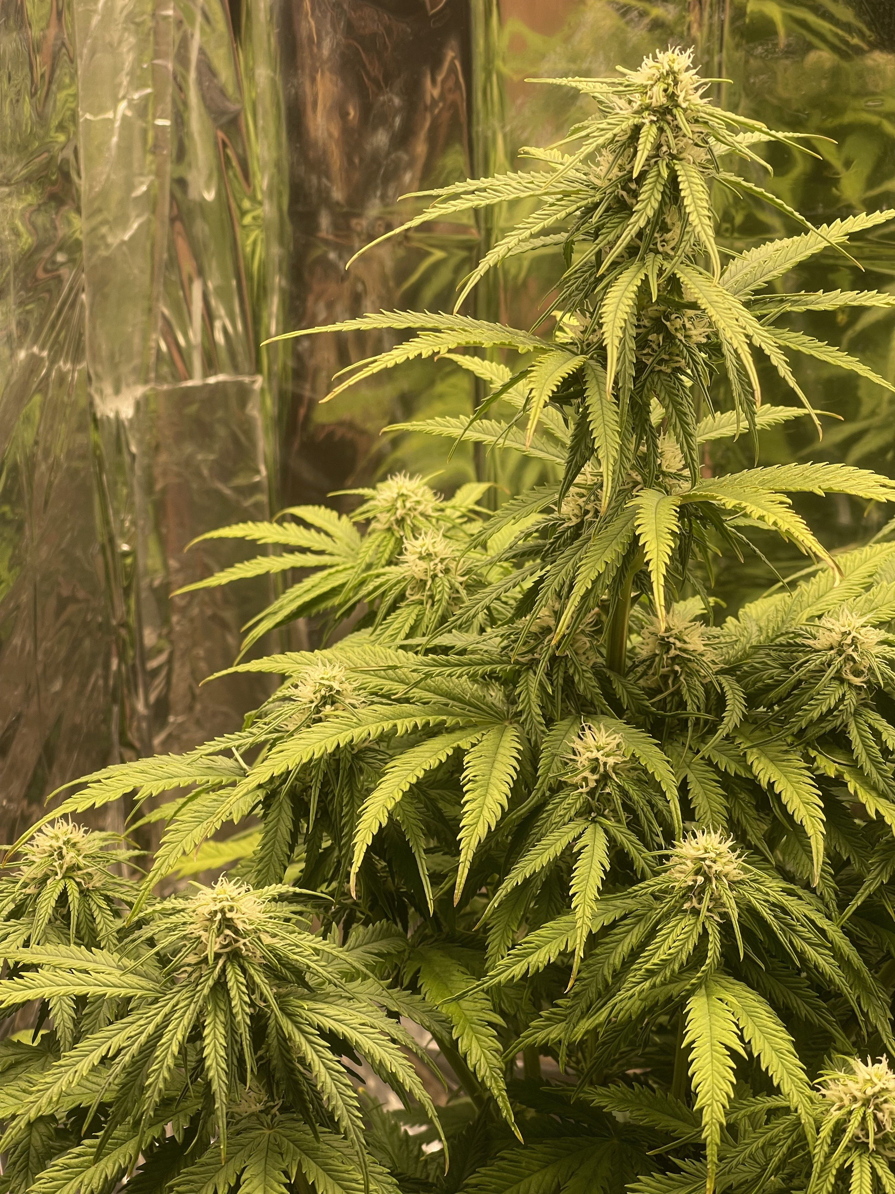 Произвели небольшую дефоиляцию нижних листьев , некоторые большие тоже отрезал , чтоб они не перекрывали шишки