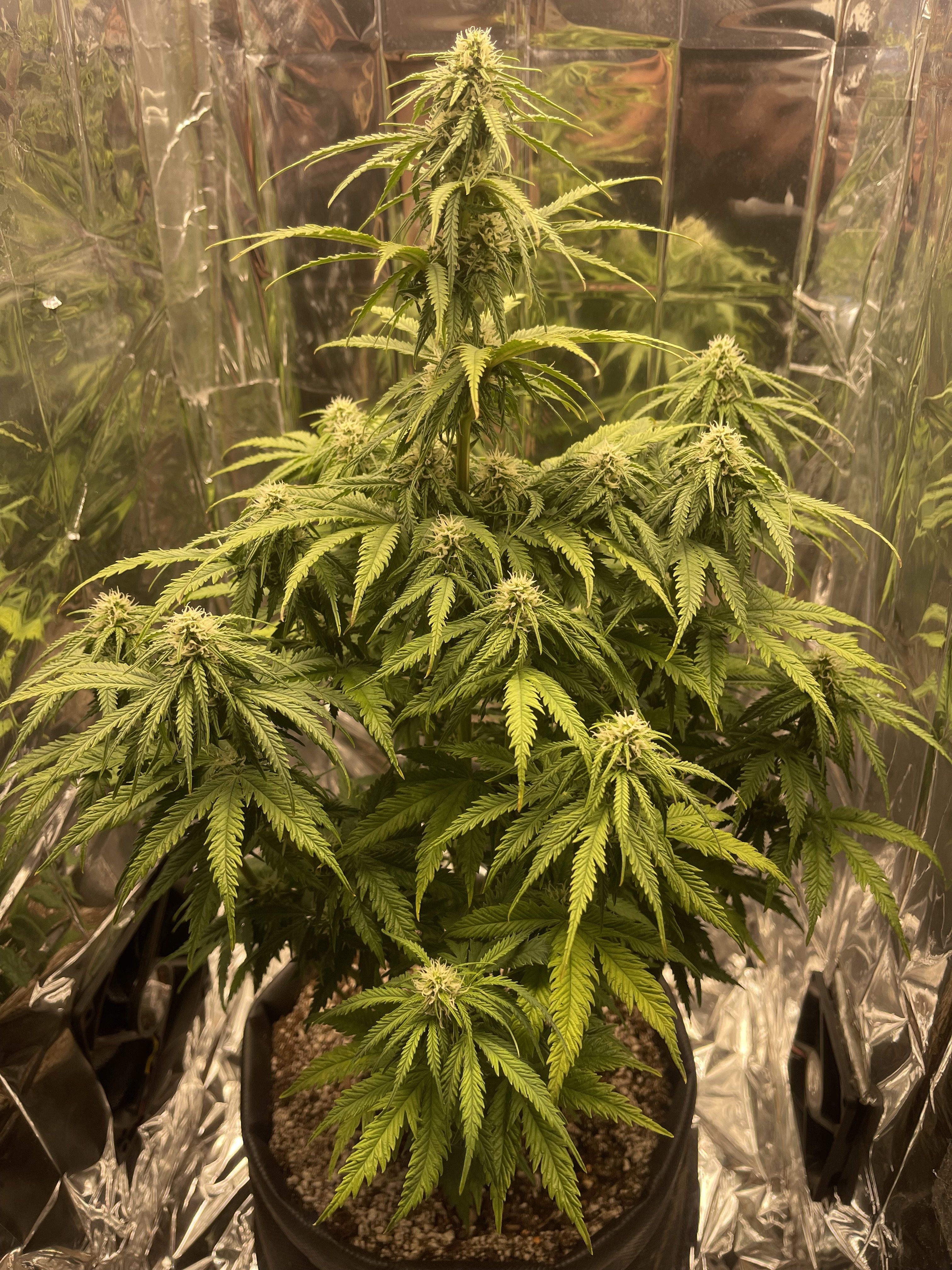 Шишки начинают набухать , запах не особо сильный , я без фильтра еду , в комнате не пахнет , если не открывать