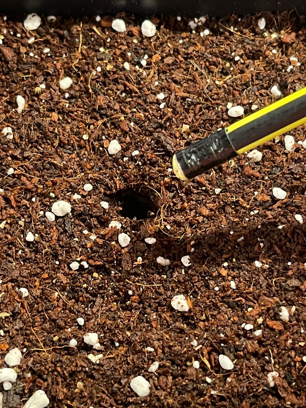 В горшке делаю лунку карандашом и с помощью пинцета отправляю пророщенную семечку в горшочек. Немного присыпаю и накрываю пленкой. Ставлю горшок на подоконник и отчаливаю )
