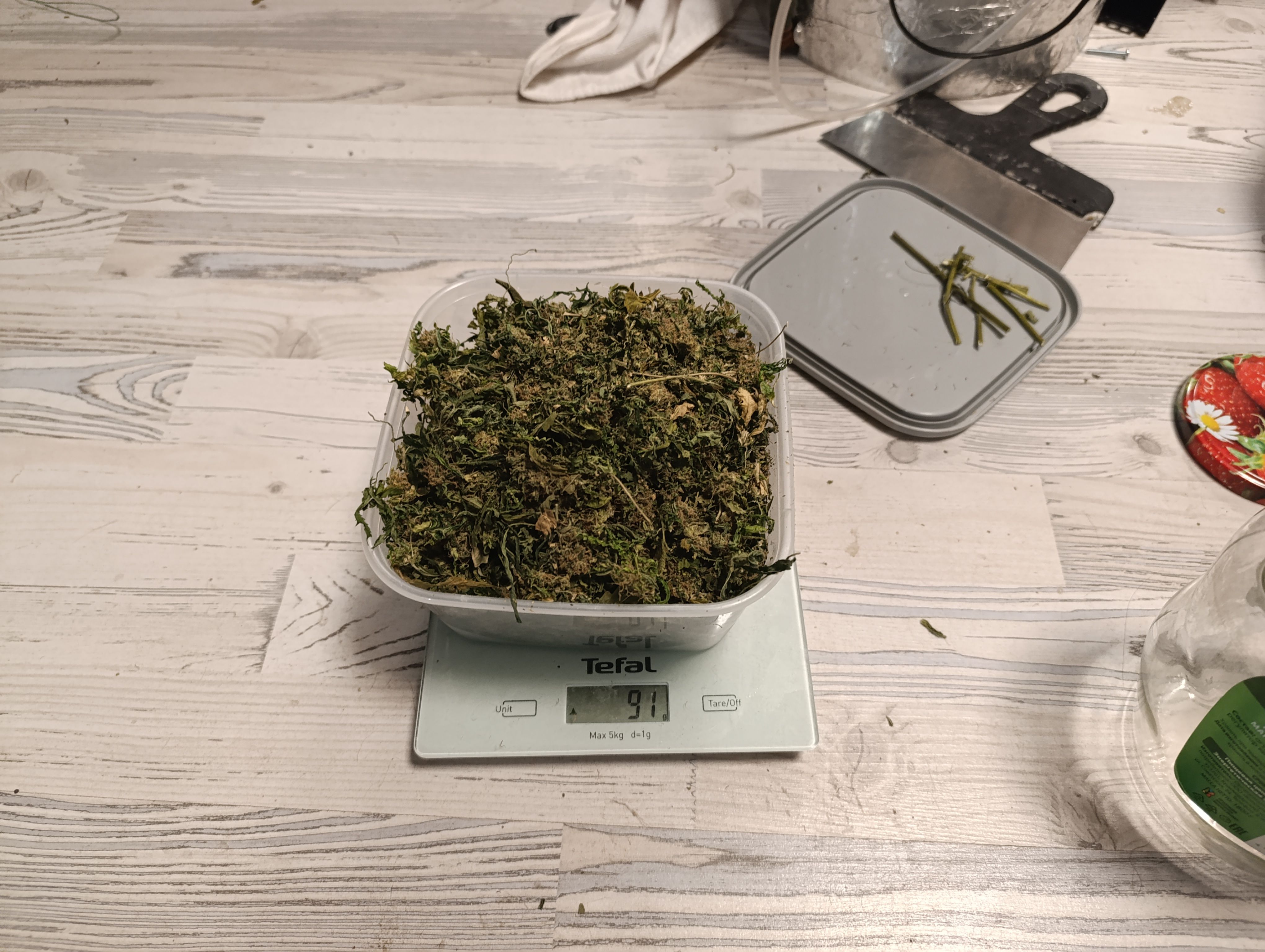 Бошки норм получились при том, что ещё лучше пару недель было подержать. Я впервые поднял нормальный куст, до этого не больше 40 получалось. Думаю не зря высчитывал состав удобрений - до этого просто использовал удобрения rastea, а перед этим кустом вообще решил посчитать точно как я его кормлю и выявил недостаток многих элементов. В общем докупил буйских удобрений сухих, добавил к недорогой расти и получилось, что удобрений на куст потратил примерно на 3 тысячи, что очень дёшево, в сравнении с тем, что я вижу в других репортаж с дорогими импортными удобрениями. Конечно не все гладко прошло - сам накосячи и не рассчитал пару моментов. Во первых сам опрыскивал бошки, что привело к плесени. Во вторых вентиляцию нужно лучше. Проведу работу над ошибками в следующем грове. На очереди gorilla.