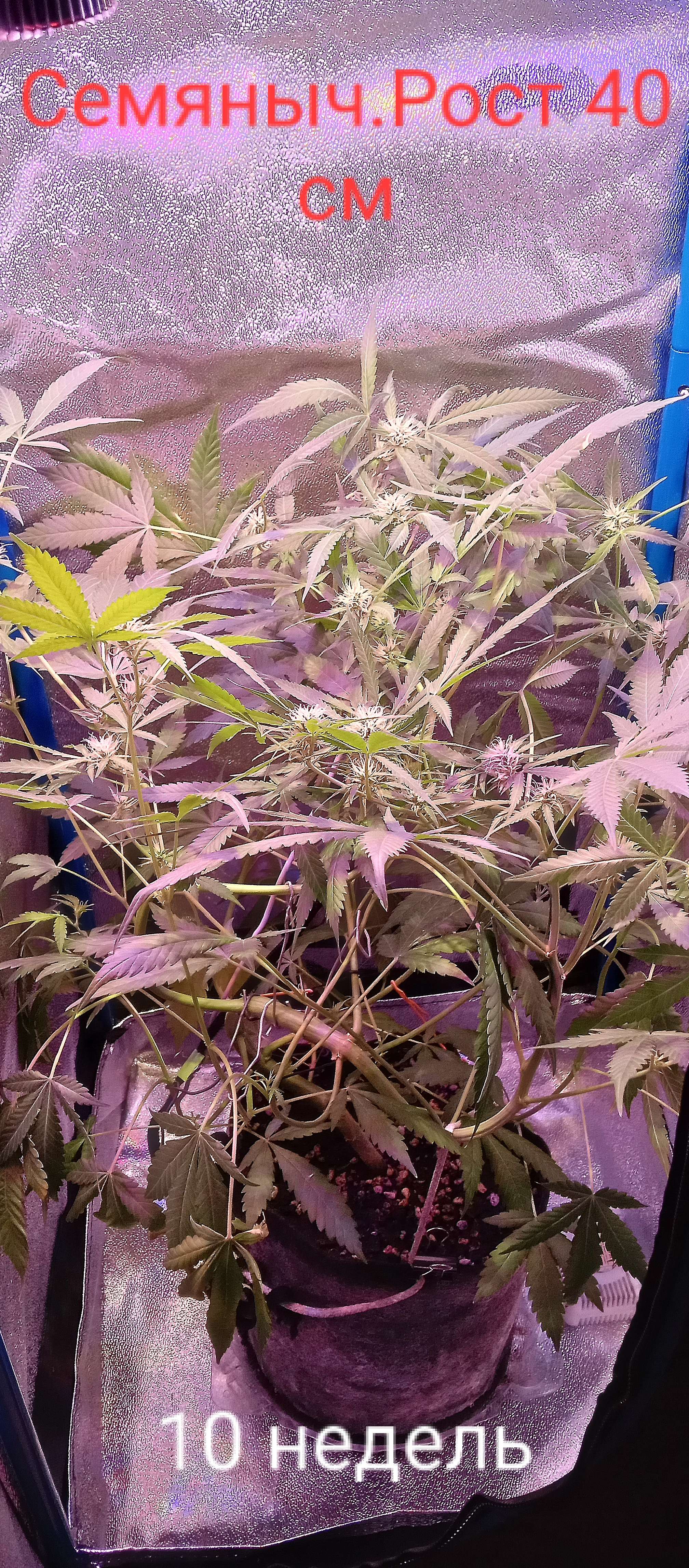 Переехала растиха в палатку. Всё отлично. Поливал трипарт на цветение пару-тройку раз, в перерывах между мелассой. Дефолиацию сделал, убрал нижний попкорн.