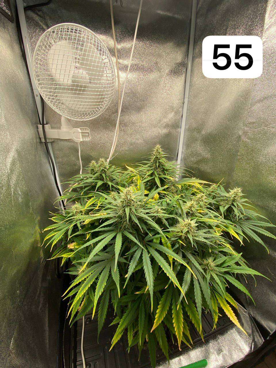 А по поводу расты, выглядит приемлемо но голодает, нехватка Калия и Фосфора, вот именно удобры на цвет сейчас давай максимально, всё в шишки пойдет, а листва пусть даже отсыхать будет, нам то листва не нужна, главное шишло чтоб зрело. И обрати внимание на стигмы, они еще белые большей частью, а значит молодые. Но конечно надо на трихому смотреть а не на стигмы, но и стигмы в том числе показатель пусть и не решающий. А в целом класс, интересно посмотреть что получится по итогу и какой резльтат будет в сухом виде, для дебюта очень даже бодро на данный момент, главное ни в коем случае щипать расту не вздумай. И если все грамотно сделаешь то такой реп можно ставить в пример многим новичкам