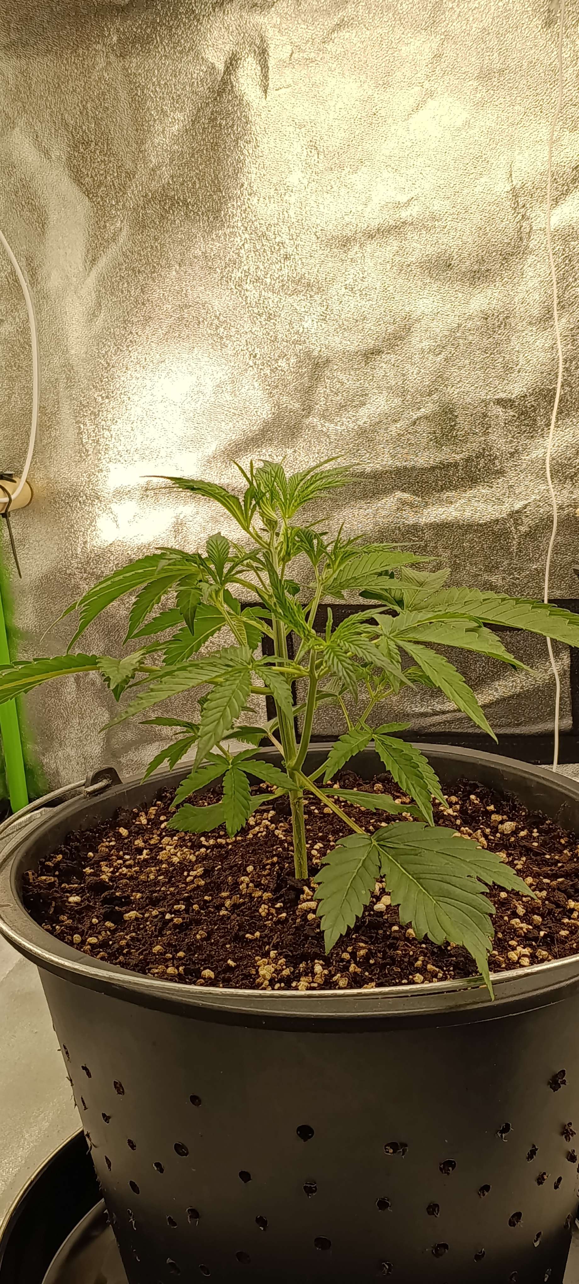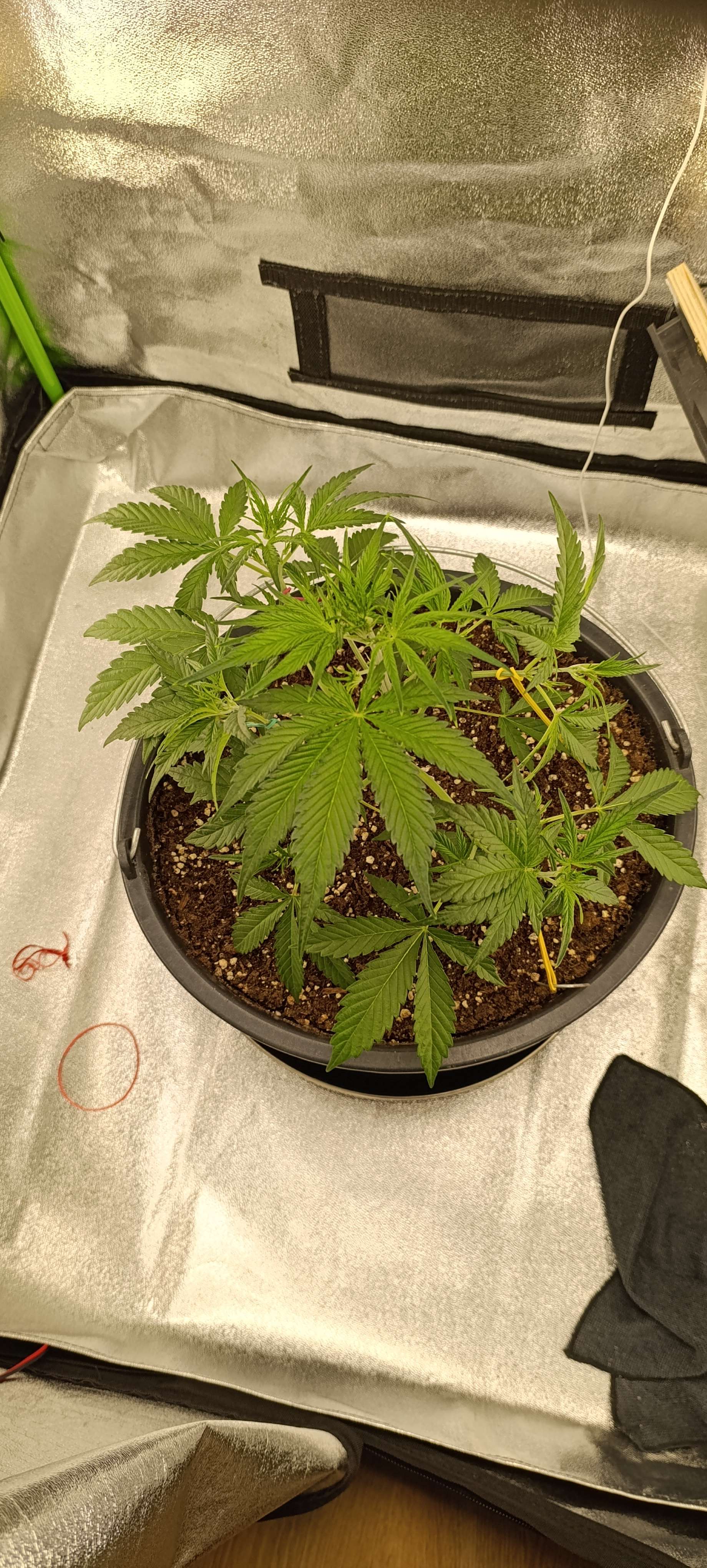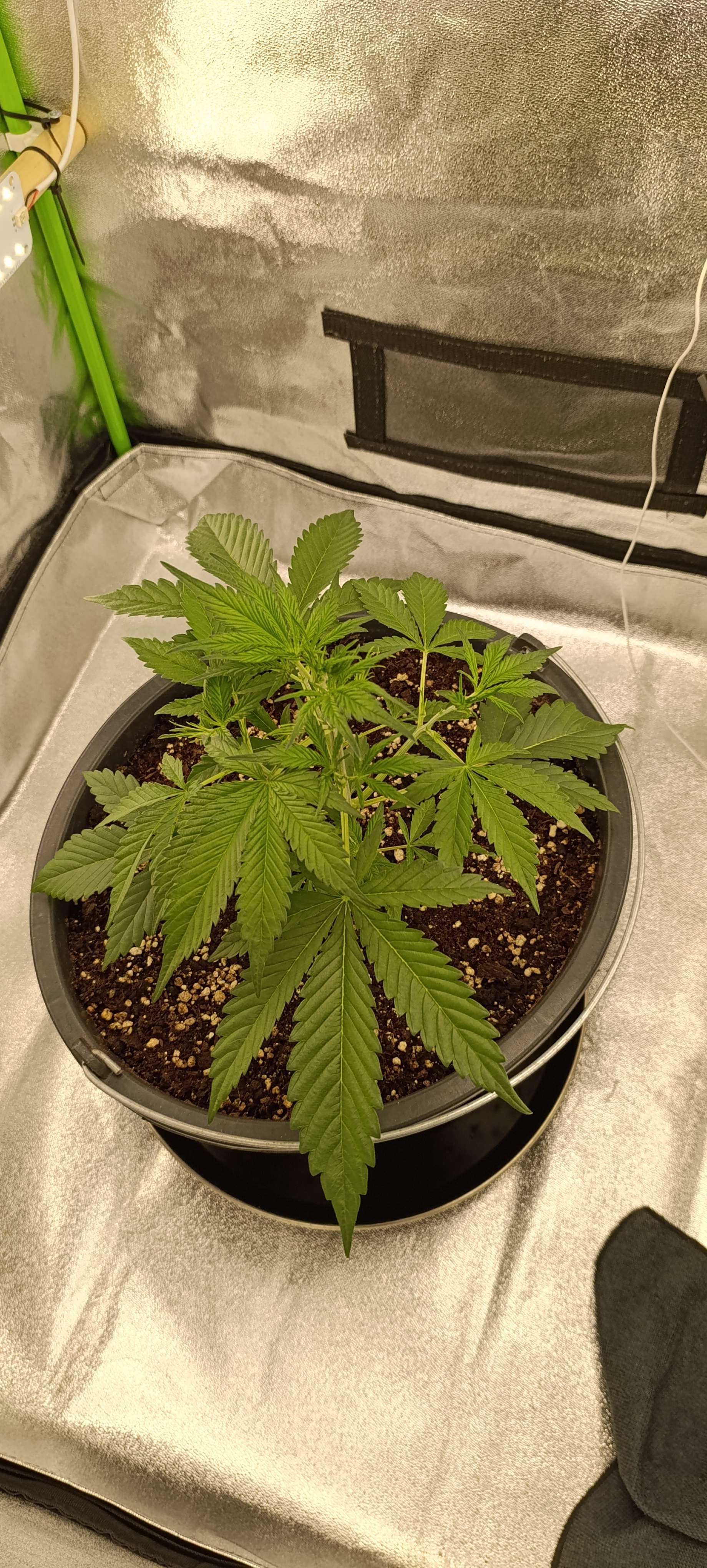 На потерю двух лопухов Прасковья отреагировала подгоранием кончиков молодой листвы на точках роста. Думаем следующий полив только вода и CalMag. Но пока ещё наблюдаем.