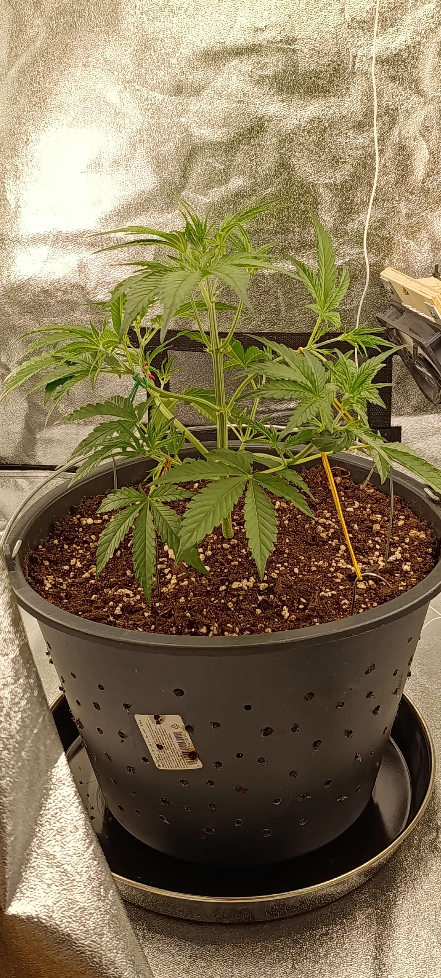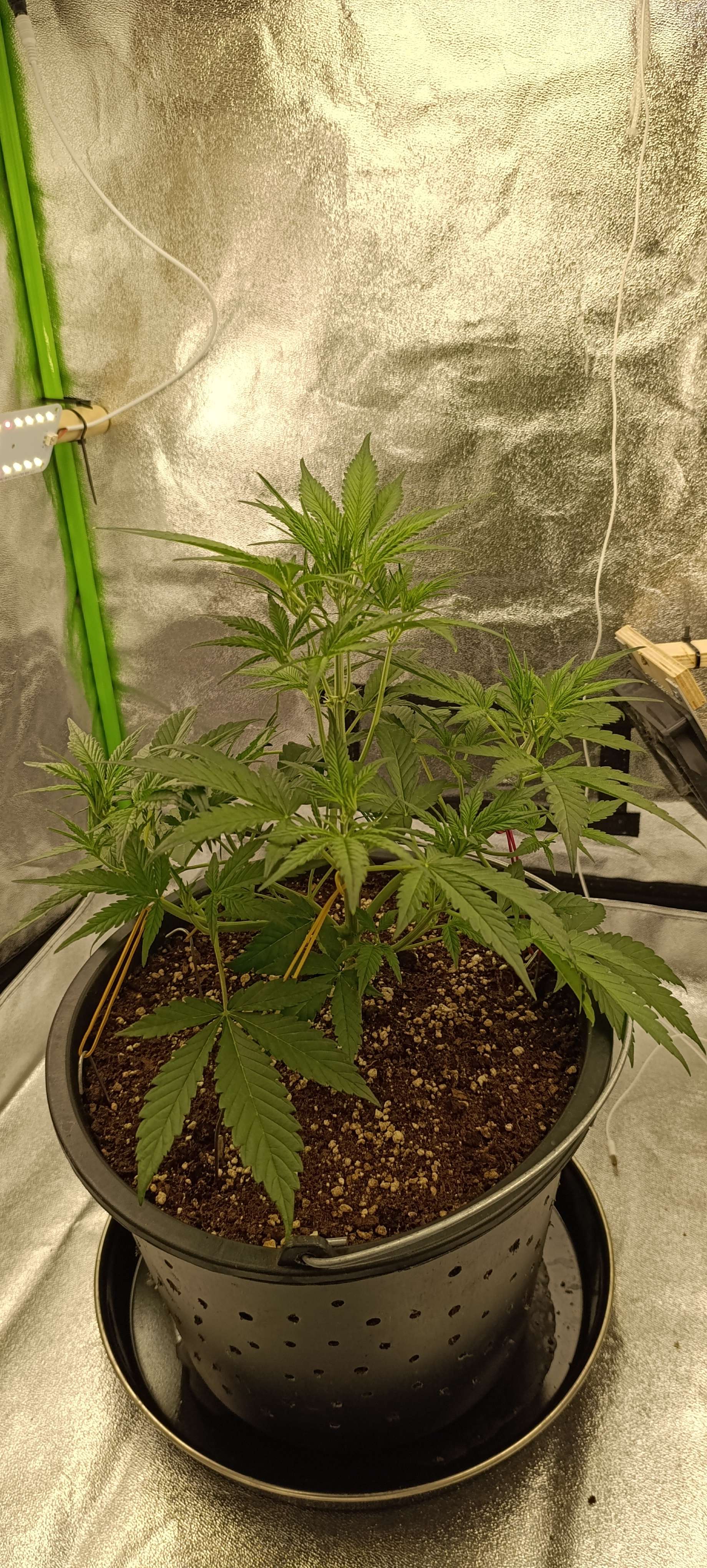 Полили тремя литрами воды с CalMag-ом. До полива развели в стороны боковые колы.