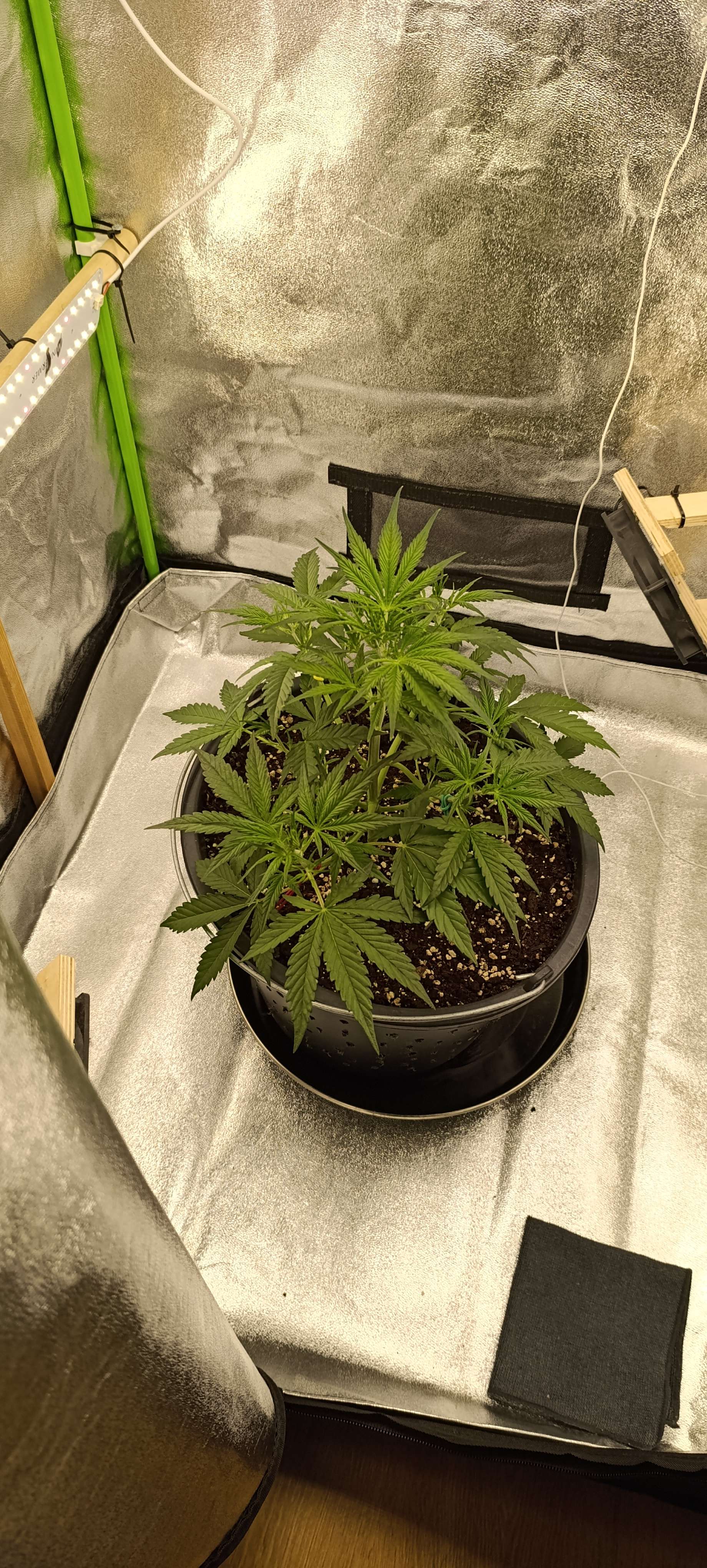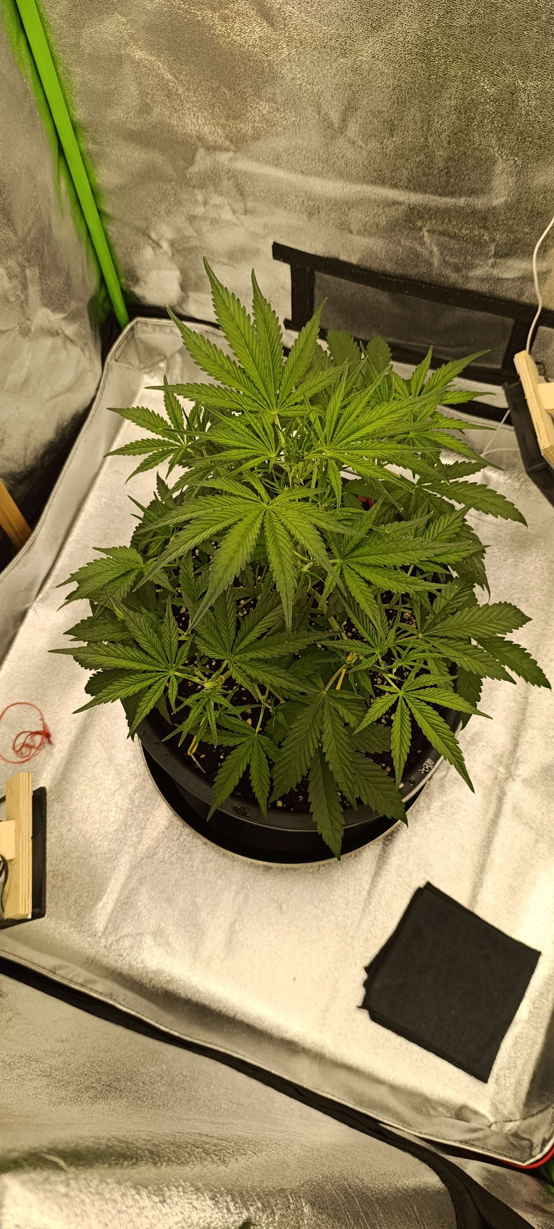 Неделя началась с обрезки одного из лопухов, в ближайшее время ещё три на очереди. Свет убавили до 28000 Lux, а то рано спать собирается. После последнего прибавления было замечено, что ко сну начинает готовится за три часа до отключения света.