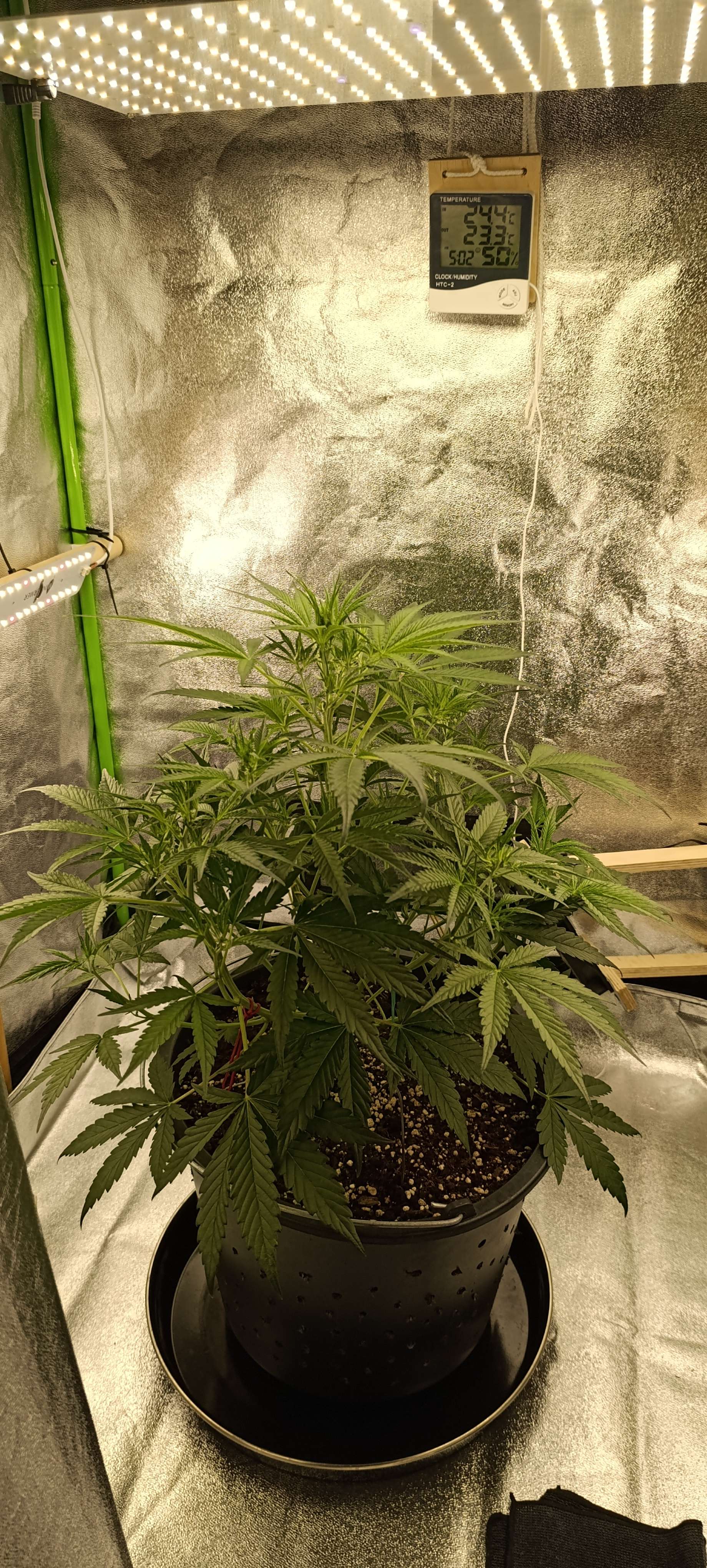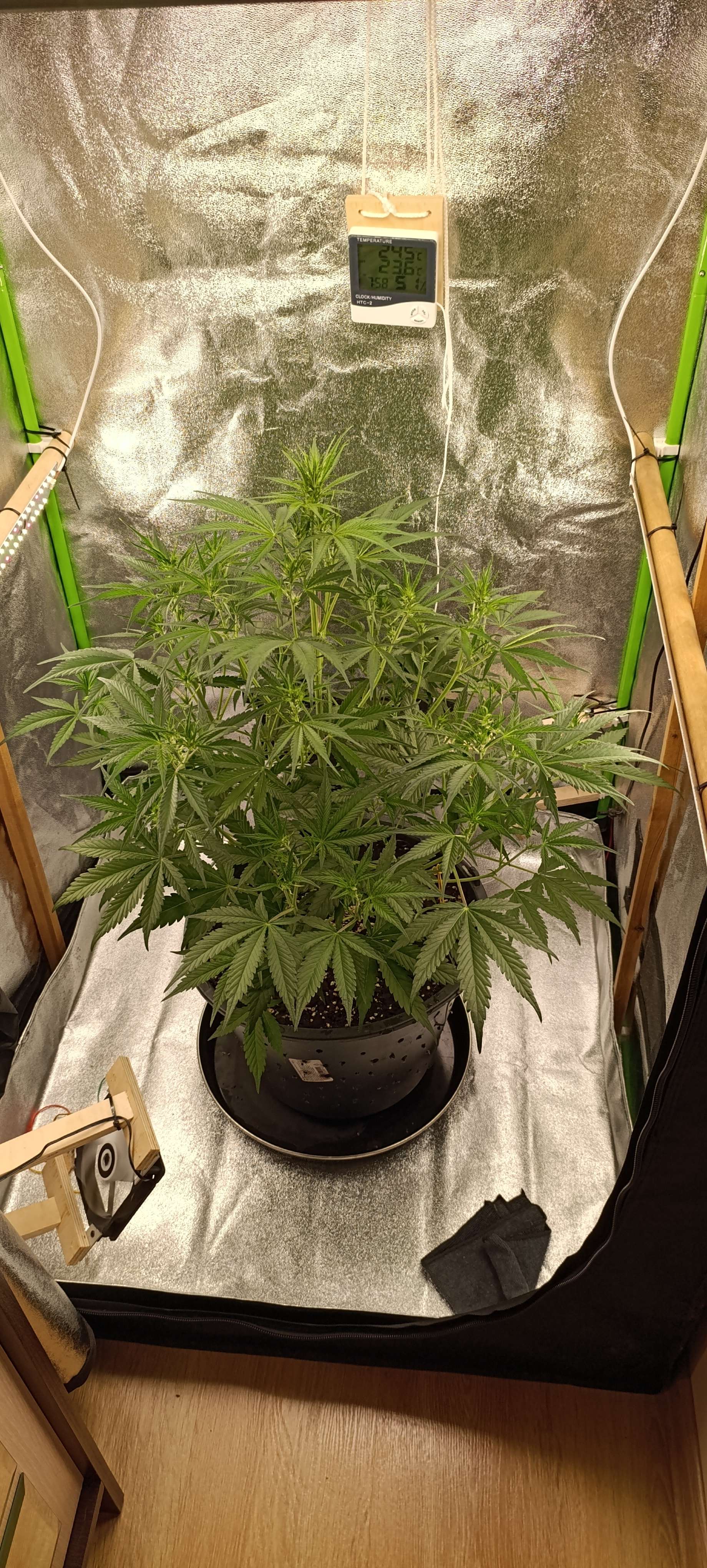 Через 24 часа горшок заметно полегчал, сделали три литра компота. Прасковья не возражала. Дренаж 100 грамм. Аппетит отменный. Свет 30000 Lux. Готовится зацвести. Следующий полив по первой неделе цветения.