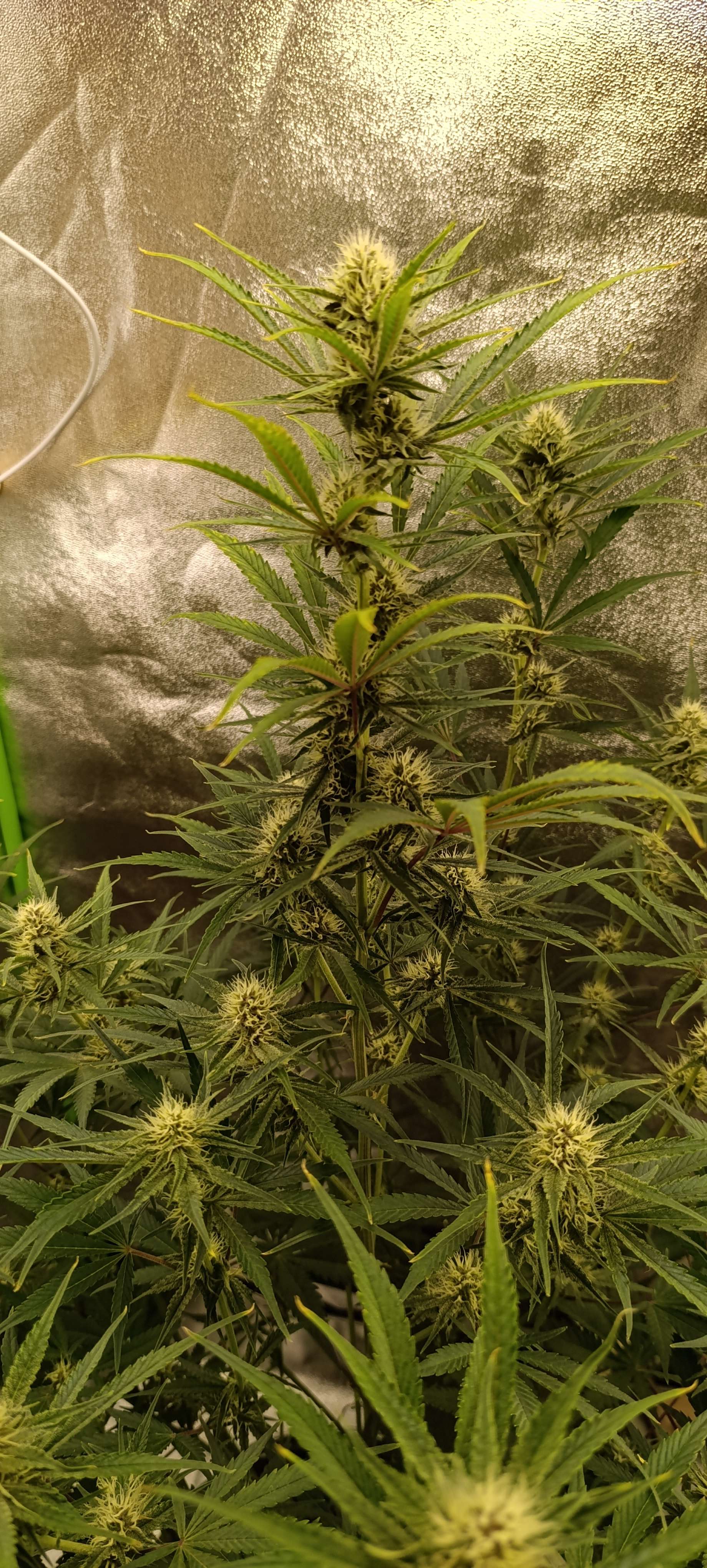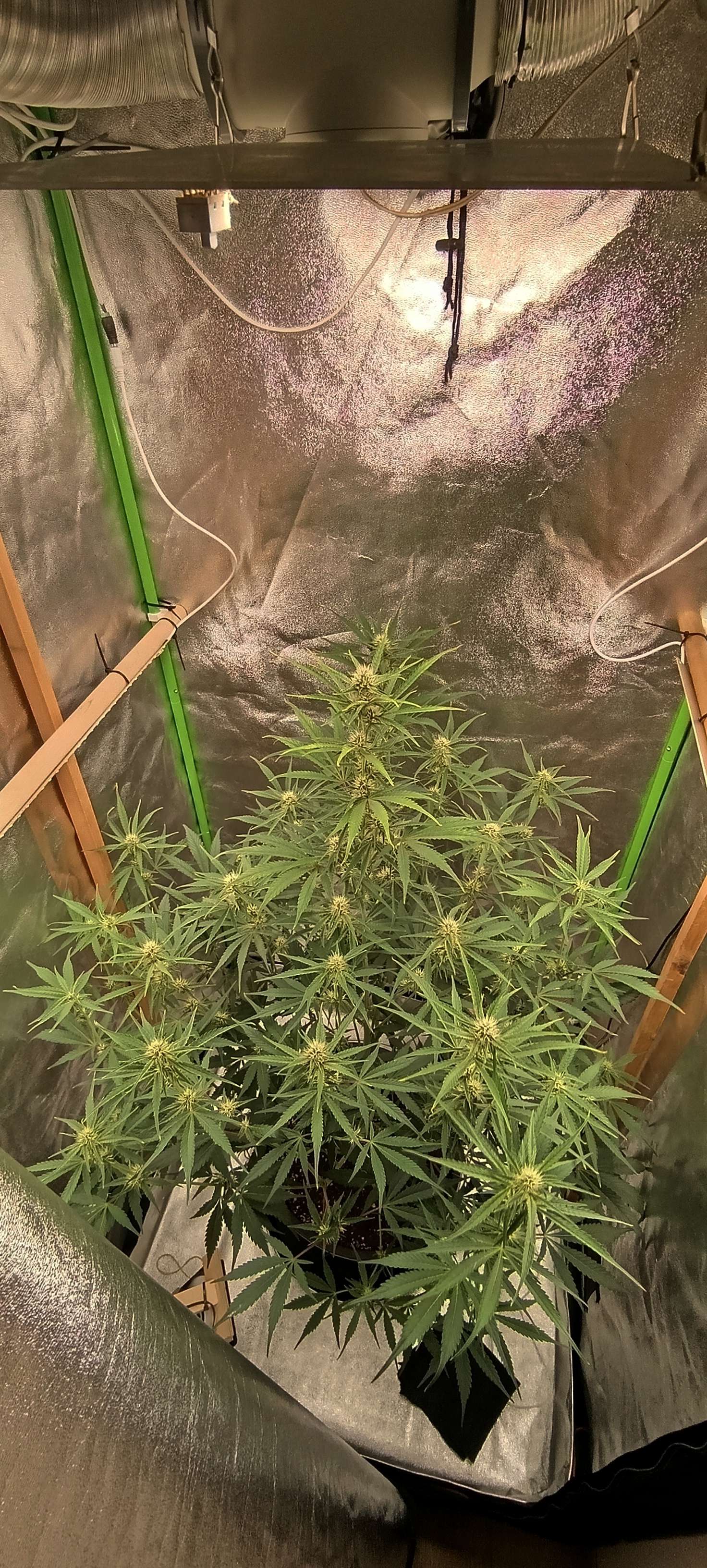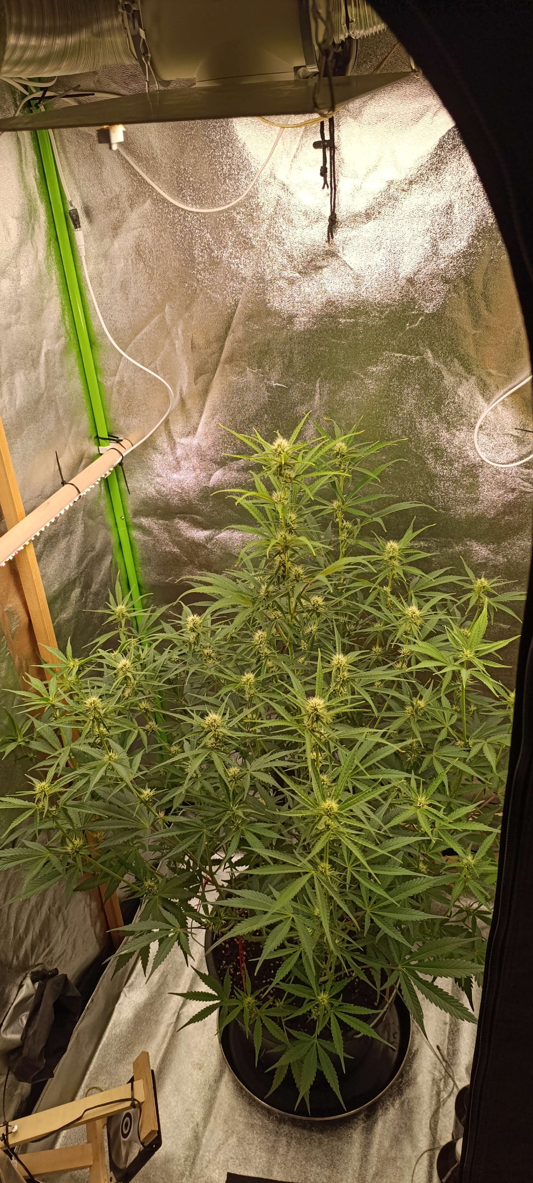Полили водой с CalMag 3,5 литра. Поливы пока без изменений, за сутки этот объём выпивает. Удалили ещё несколько отростков без шишек.