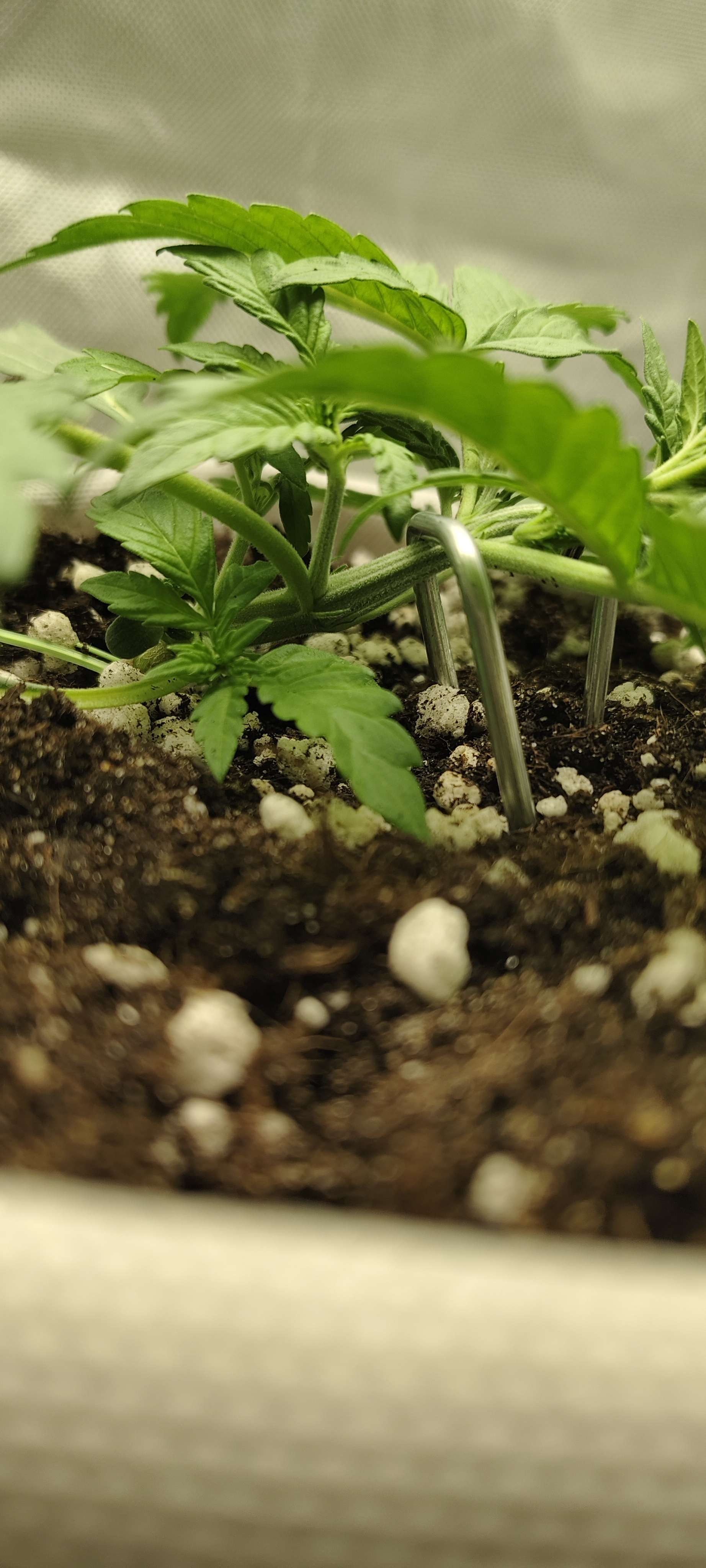 Да сильный ,только вот на листьях начали какие то пятна появляться подозреваю что нехватка кальция ,а так для трёх недель я считаю крепкий кустик! В следующий полив должен быть компот ,не знаю обычной водой пролью добавлю Калмага попробую,щас ребята опотные подкинут че может !