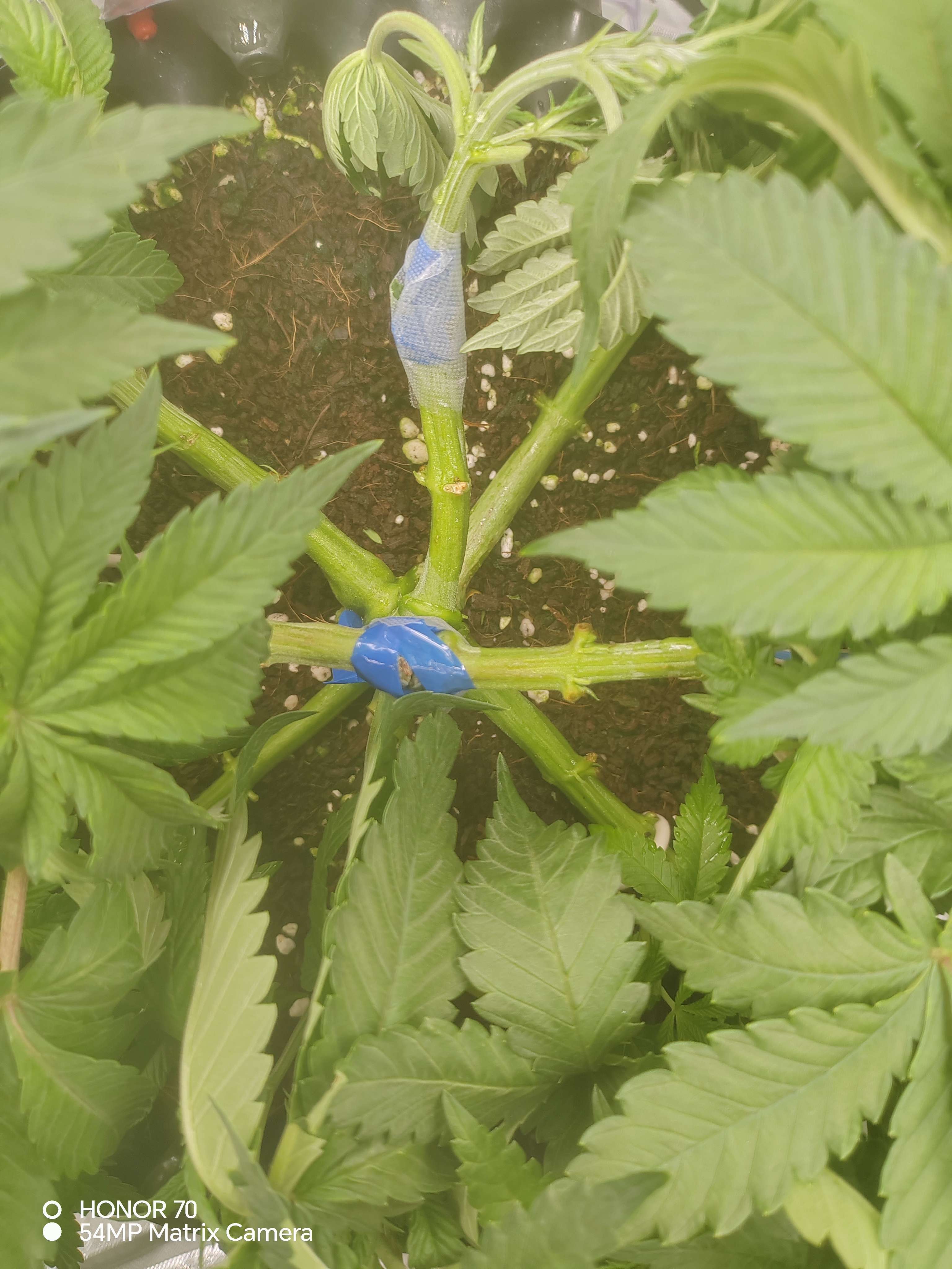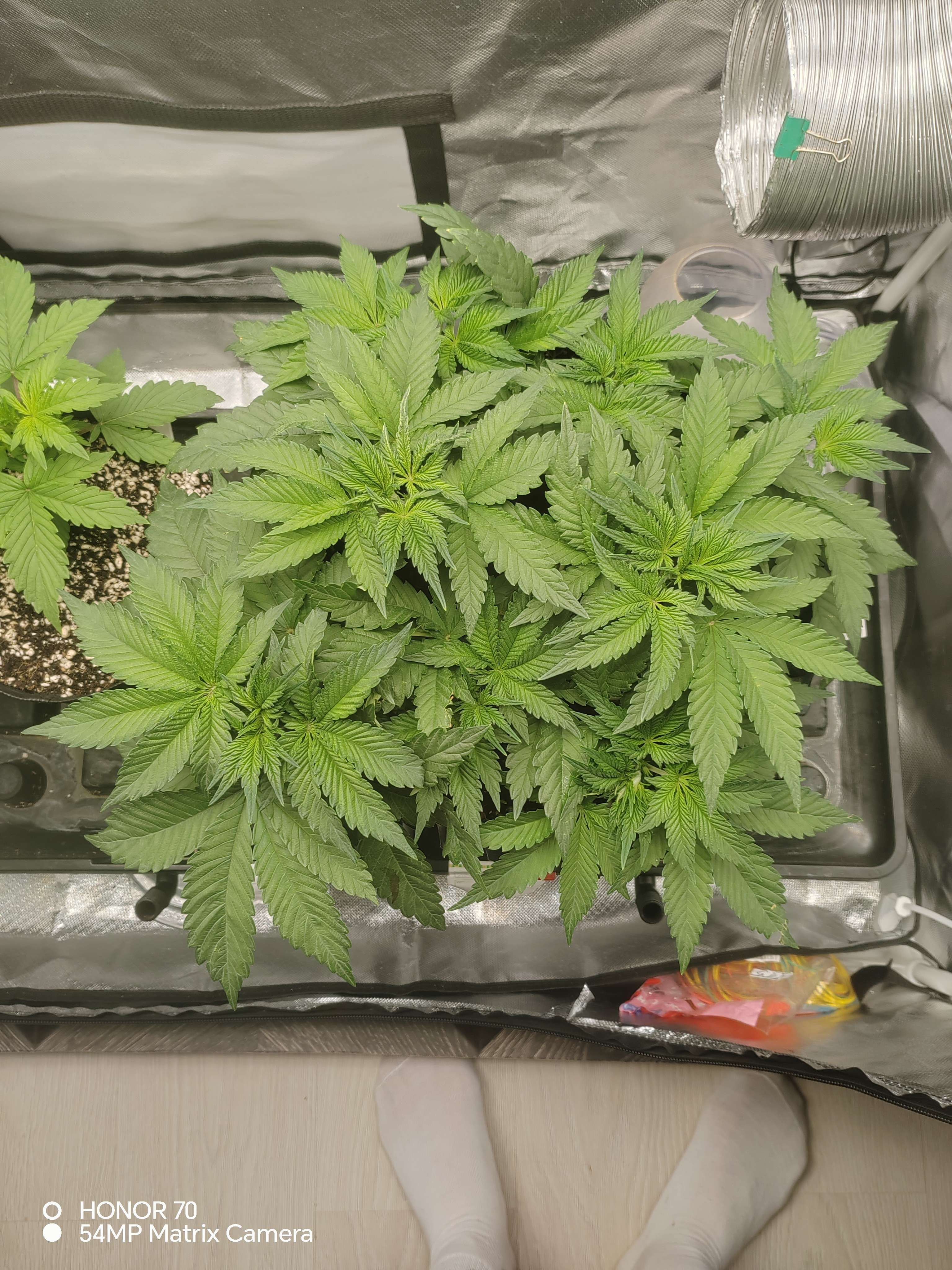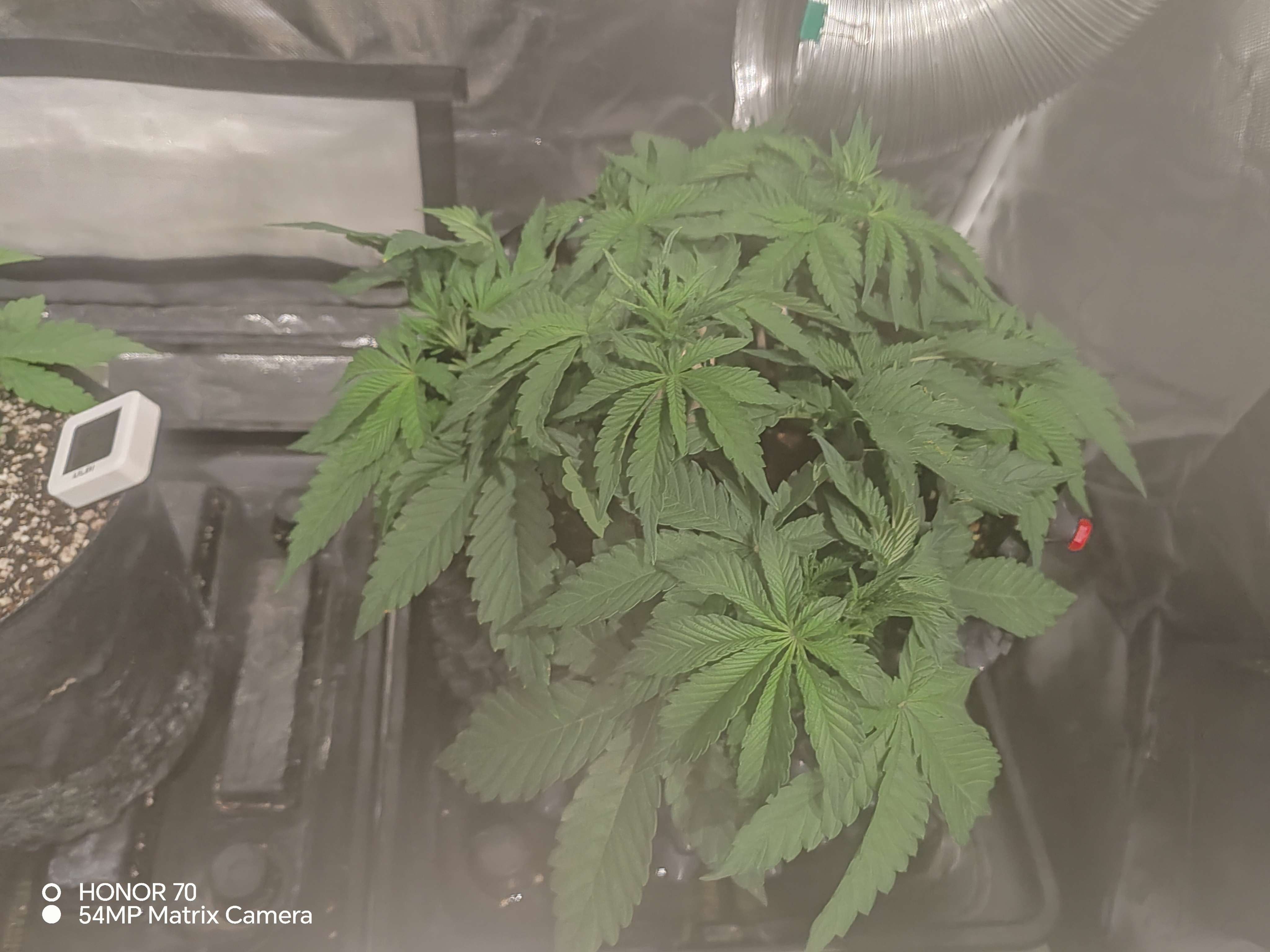 Приветсвую🤝давно не появлялся. За две недели много чего было. В общем:беспокоило меня то что слишком большой показатель пш дренажа, 7,1 ппм наоборот был маленький, 300.при входе 550.сделал вывод что куст голодает скоректировал питание, стал давать больше базы. Щас вход 850-900 пш 5,5. Выход 600 - 6,9.пш все равно большой. Думал начну кормить больше и он упадет, но пока стоит на месте. Пару раз за две недели делал дефолацию, убирал большие веерные лопухи и немного убрал второстепенных веток с низов. В самом верху при загибании треснул ствол. Потом давольно сильно надломилась одна из основных будующих кол, изолента не помогла, пришлось удалить. Думал сильно стресанет. Но нет, замотал изолентой, через пару дней он оклимался. Стресоустойчивость у него хорошая👍неделю назад давал стим по листу Simlex Vega. Раз в неделю опрыскиваю эпином. Так же раз в неделю добовляю в компот циркон. Пока что всё. Едем дальше🤝