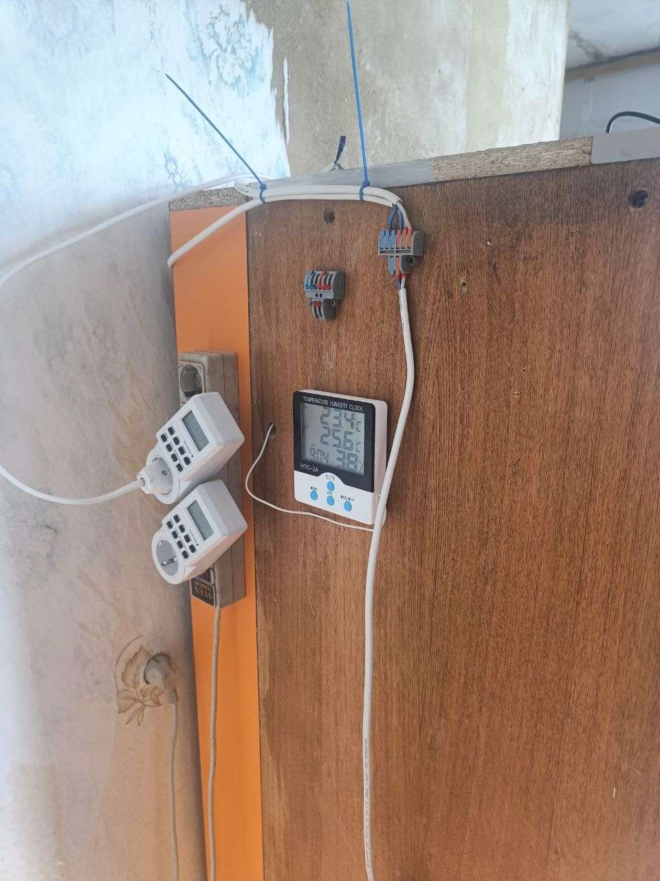 Всем доброго времени суток.Решил заняться,читал ,смотрел, форум чуть больше 3 недель, закал семки, 20.03 замочил в рюмке с 10 каплями перекиси 3% , через 2.5 дня дали корни , оба , посадил в горшки по 10л , предварительно пролил , и в шкаф, в темноту , шкаф собирал 2 дня , обклеил ,все проклеил алюминиевым скотчем,свет led полный спектр по 85вт 2 штуки диоды на Samsung 281+ вывел все оборудование наружу, установил вытяжной вентилятор на 95кубов,внизу кулер из блока питания с компа ,с этого же блока срезал провода и использовал ,для кулера 120мм ,на вход вентиляции снаружи прилепил угольный фильтр для кухонных вытяжке ,таймеры две штуки на свет и вентиляцию,заказал термометр для регуляции вентиляции и пару удобрений, ghe пробники плюс отдельно докупил micro sw,ph down , водой пролил кипячёной,сделал домик для датчика гигрометра