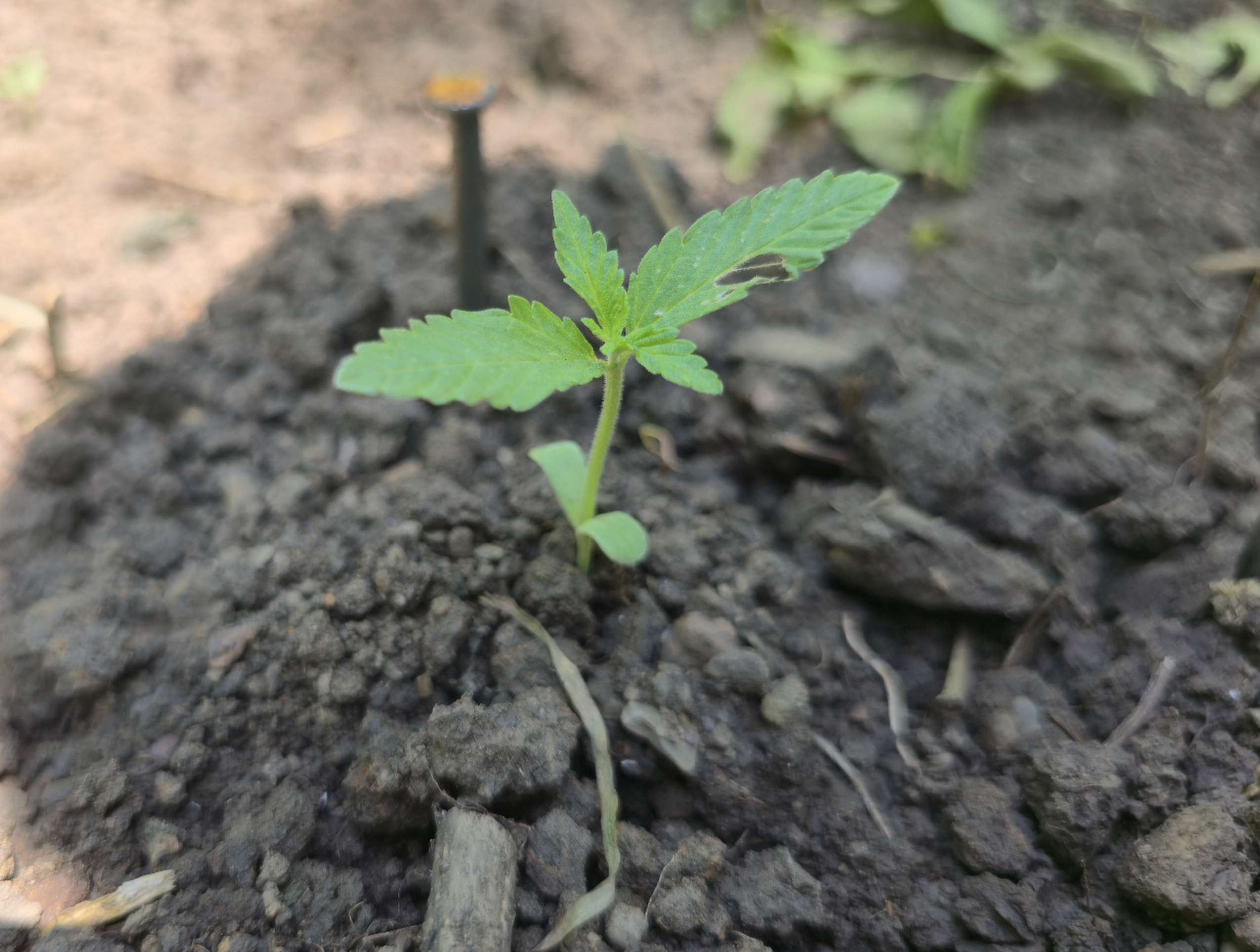 На 8й день от проращивания(20.05) обстоятельства сложились так что пришлось экстренно пересаживать в аут, место выбрал в кустах ,среди зарослях крапивы , крапива высотой уже там 1,2 м , заранее пепекопал почву, покосил лишнюю крапиву для учшего доступа к солнцу.Одну растишку атаковала тля , сегодня заметил что пытались и вторую , завтра придёт средство Purshat Биоспрей для обработки от вредителей, обработаю все вокруг.