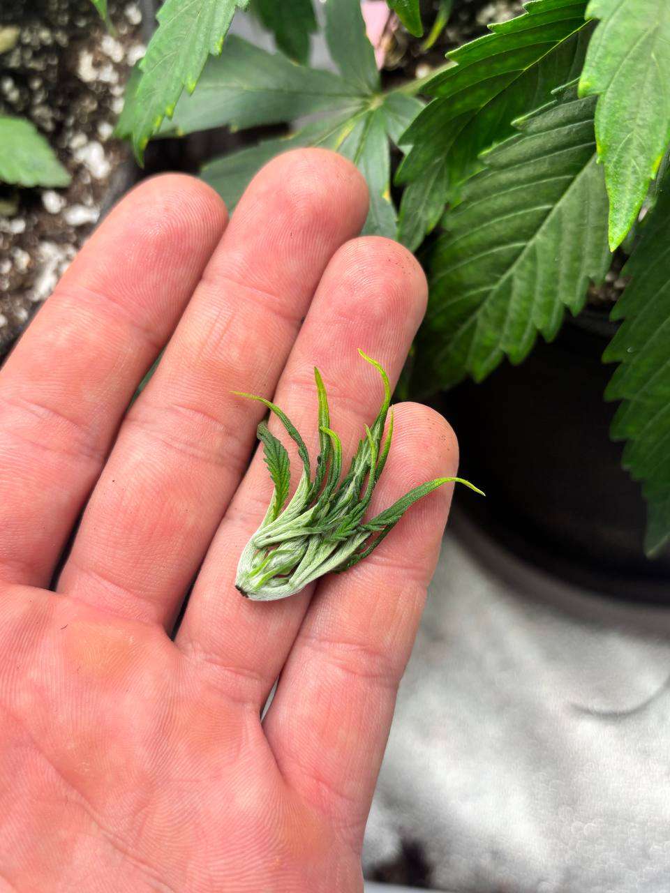 Вчера сделал топинг на 20 дне, очень боялся , так как паста застресовала и думал будет ещё хуже , но после полива с правильным пш рост начался очень бурный , она прям голодала жёстко , а когда вошла в баланс для усвоения пит веществ все сразу же встало на свои места , по делу стадия самая первая не более , но вовремя все решил , подумал , ну а если без топинга и так дать ей о ходить она же потом так разрастается со своими соседками , что места будет пипец как мало , ну и чик ножницами ! Завтра скину фото 4 недели и покажу отличие в росте начало топинга и спустя пару дней ! Развел ветки и веерные листья , сейчас буду концентрировать внимание на 10 оставшихся колах , корни в порядке , пусть сделают колы жирными несмотря ни на что! Честно говоря из всего этого могу выделить следующее - но это только субъективное мнение - если хочешь гров без проблем , то надо уделять достаточно времени многим сопутствующим моментам , я же уделял девченкам максимум 10 минут в день , потому что прихожу с работы поздно , работаю на достаточно масштабном строительном объекте в 3.5 гектара и по большей части увлечен работой и благополучием своей семьи , хотя мне жесть как хочется как в первые разы торчать часами в палатке и наслаждаться благоустройством своих малышек , увы приходится ставить приоритеты, по факту , по факту , думаю , ято выше описанное не является серьезной проблемой - да минус к шишкам , да не то,что я ожидал , но тут вина только моя и я никогда не сдавался при проблемах в выращивании , а их было море , я как практик так и теоретик , просто беру и ищу выход по возникшей проблеме , конечно меня это мороснуло ,конечно я затемпературил по этой ситуации , но тут же я остановился и задал себе вопрос , ну а что я мог сделать , ну да у нее дефы при блоке , у меня дефы времени , никуда не деться - надо идти вперёд , для меня гров это удовольствие , ну это действительно волшебно и круто , особенно когда ты живёшь в России