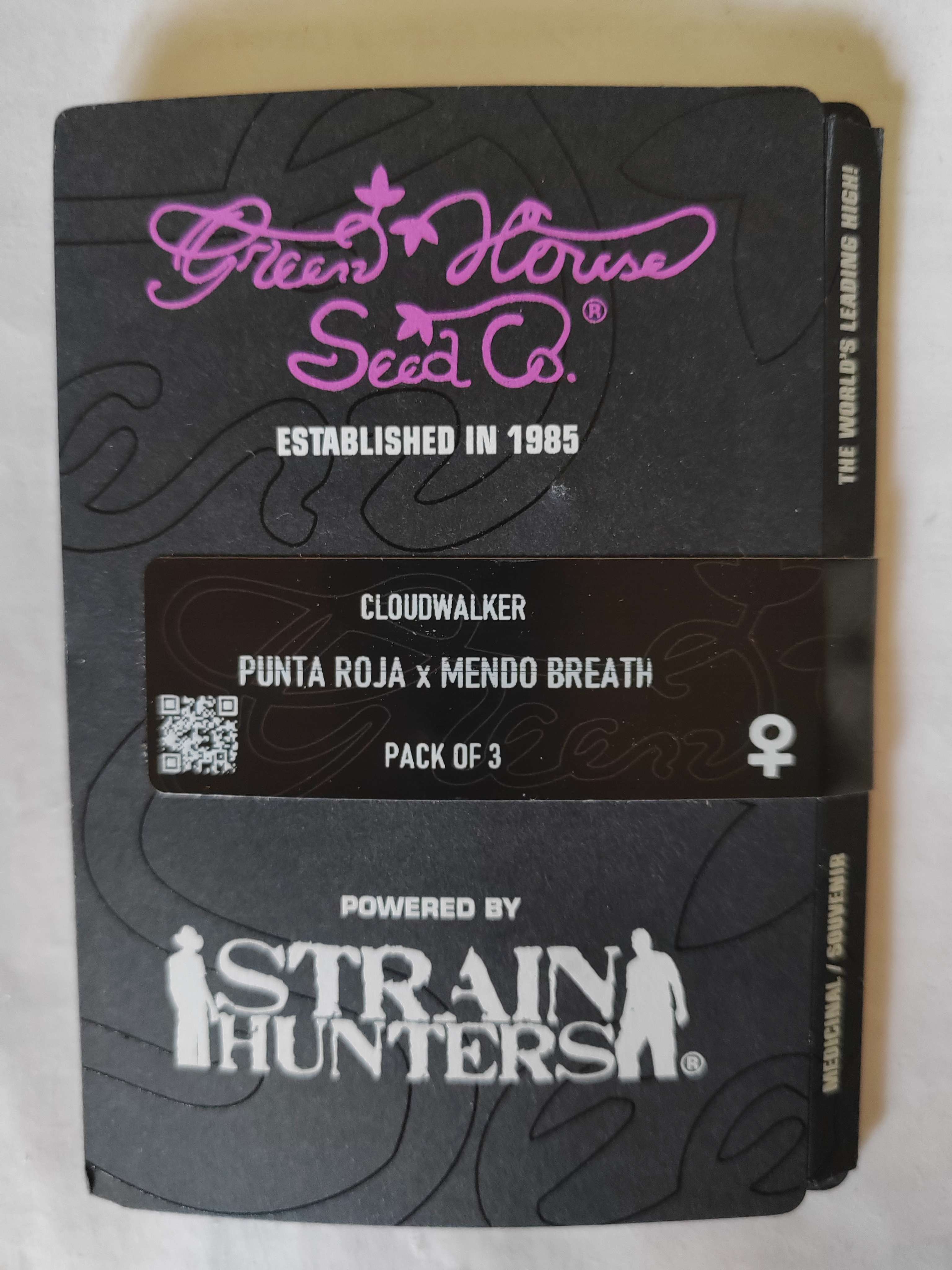 Cloudwalker – Green House Генетика: Punta Roja x Mendo Breath Генотип: САТИВА – 70%, ИНДИКА – 30% THC: 26-28% и CBD: ~1%