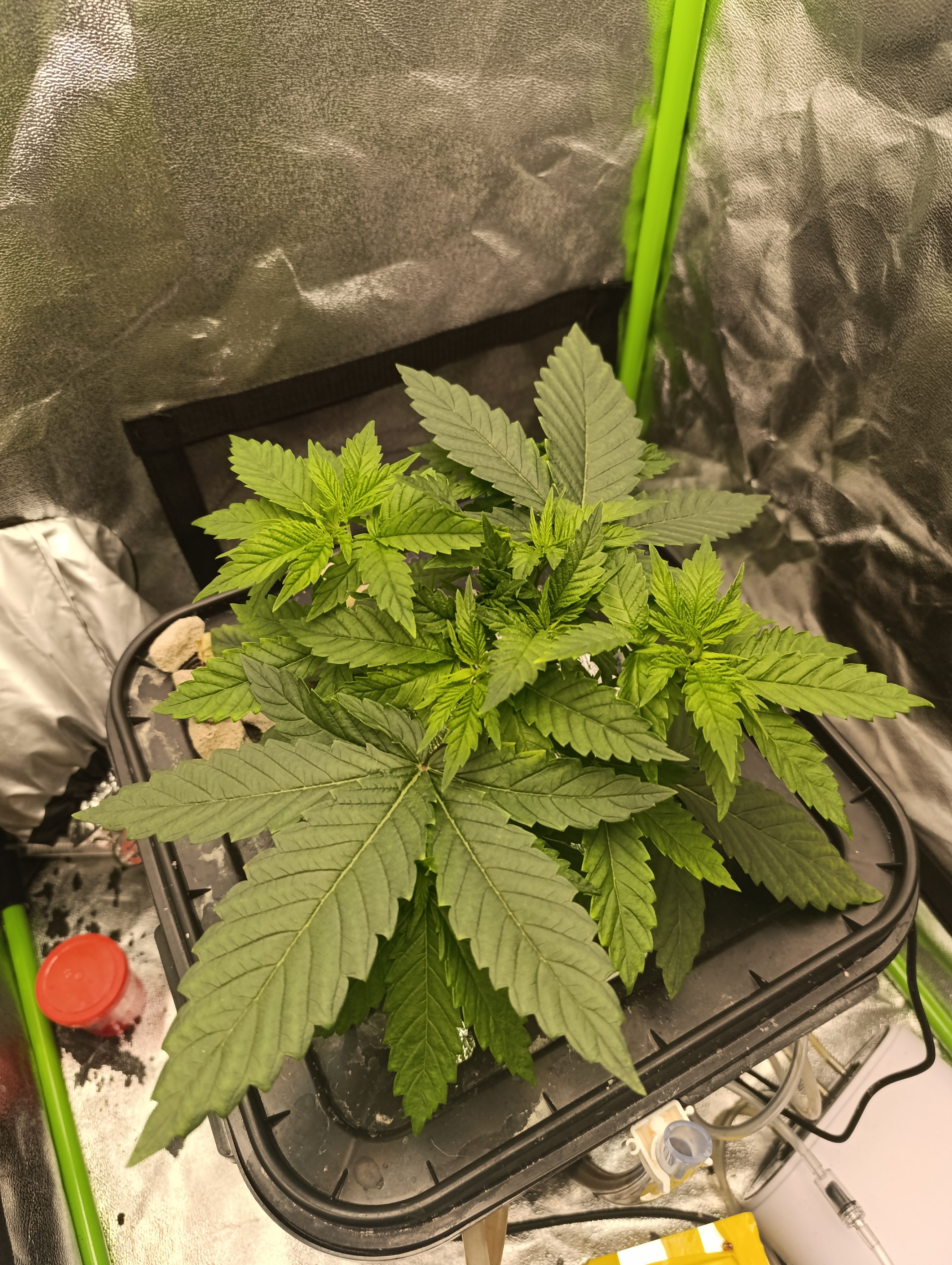 Подрез ещё два лопуха. Долил 5 литров воды. Что удивительно ни разу пш не пришлось корректировать. Долил воду до нужного объема и он опять - 5.8. лампа работает на 100 Вт.