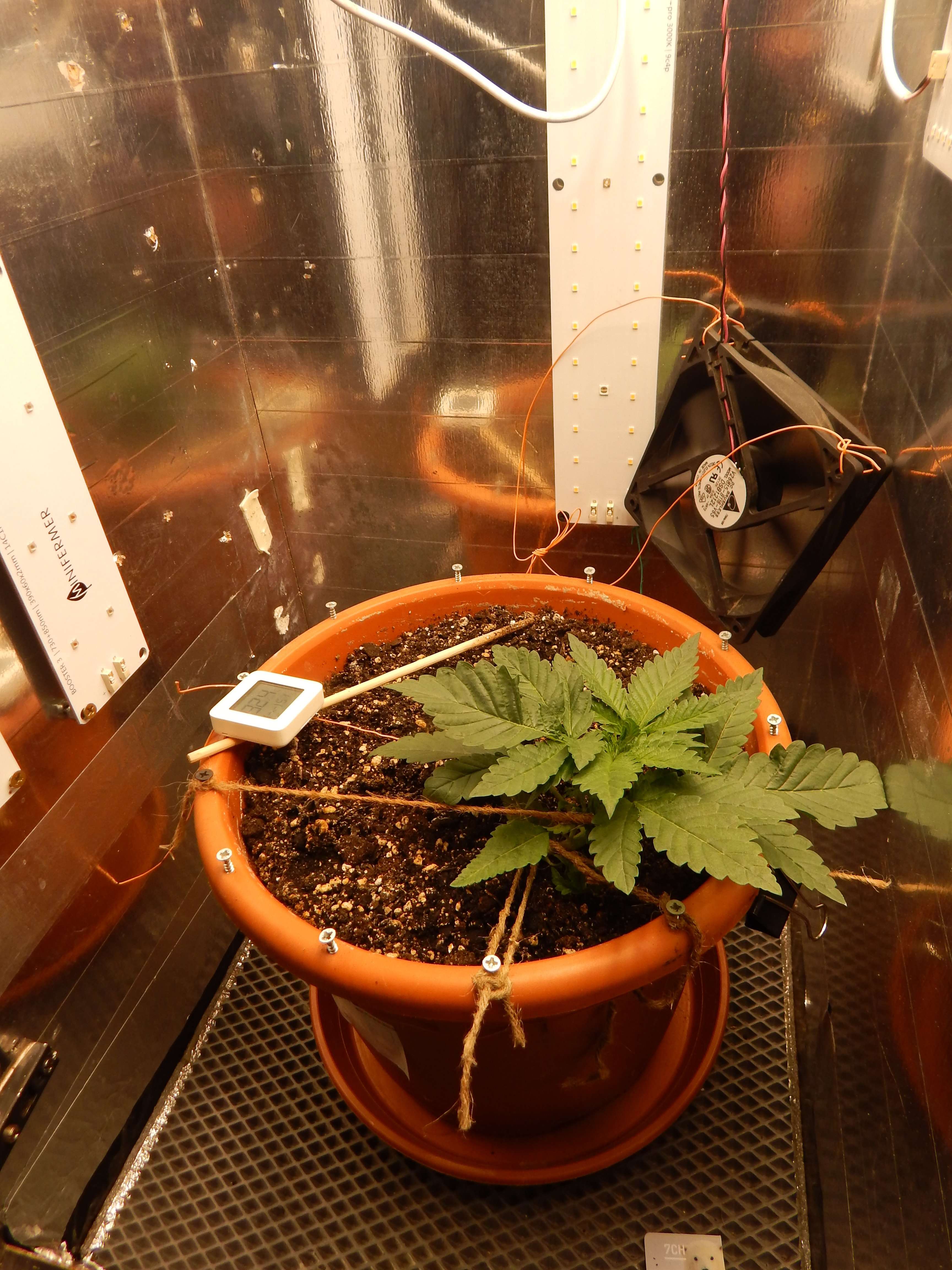 Так вот, - забей)) у меня ящик 40*50, я в нём сейчас два кустика поднимаю (два Карл) Северного сияния. Высота правда чуть поболее, но если придавишь светом на веге, то вырастит не пальма)
