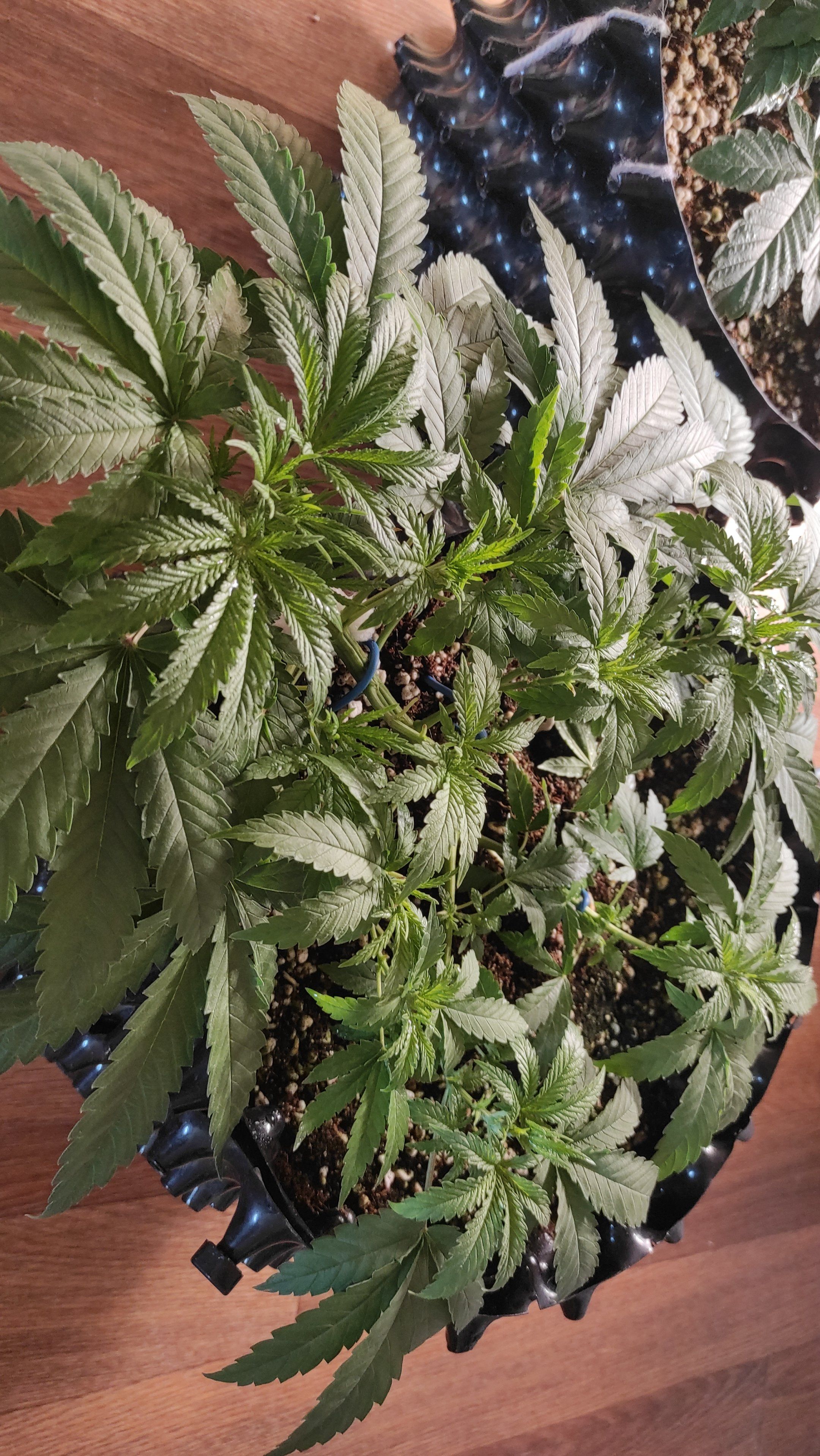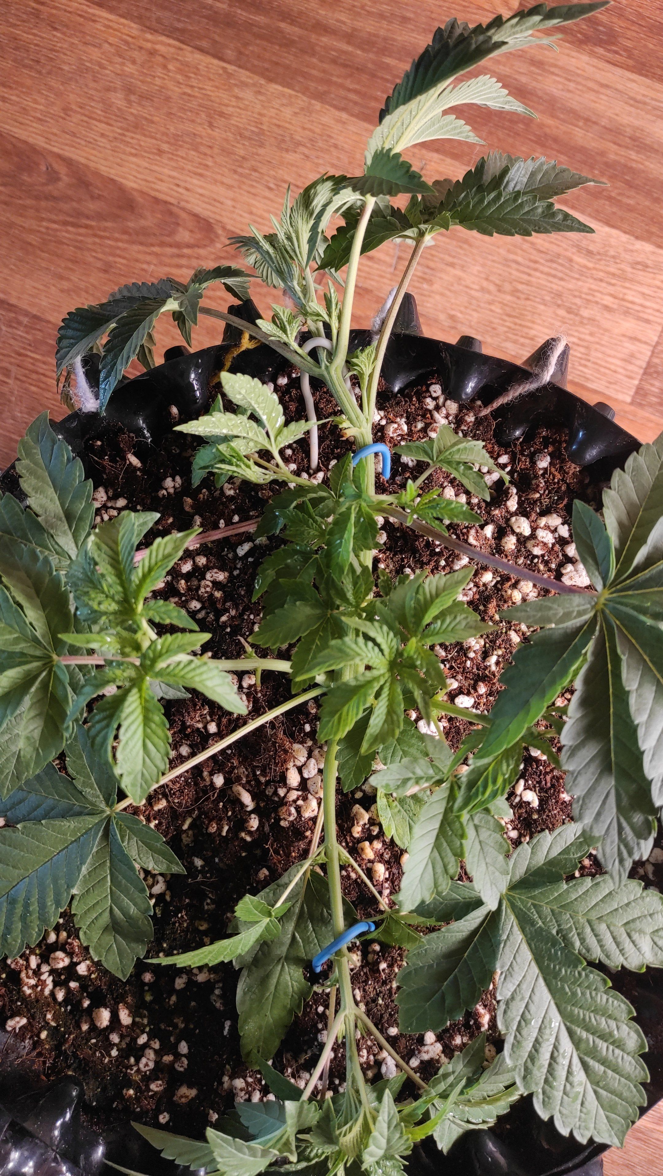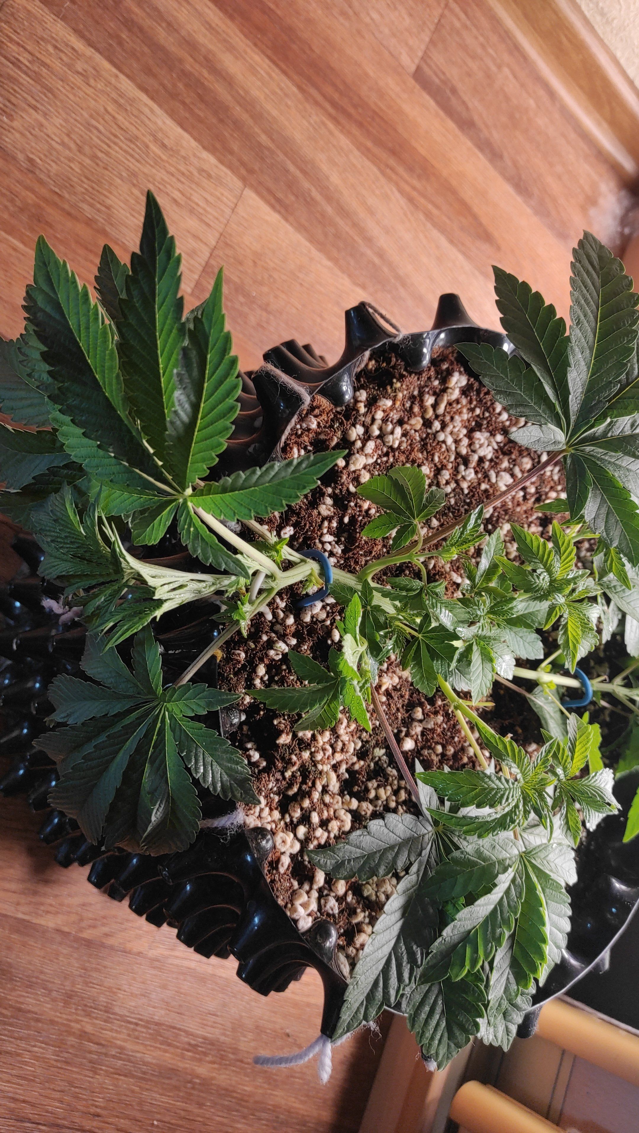 Растянул девочек по всей длине горшка, уложил ствол каждой под 90 градусов для равномерного заполнения пространства