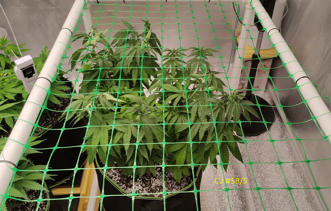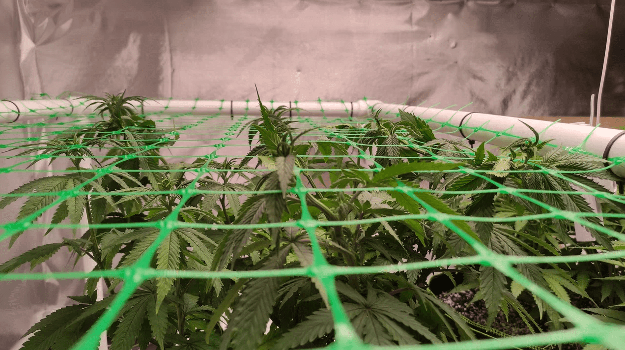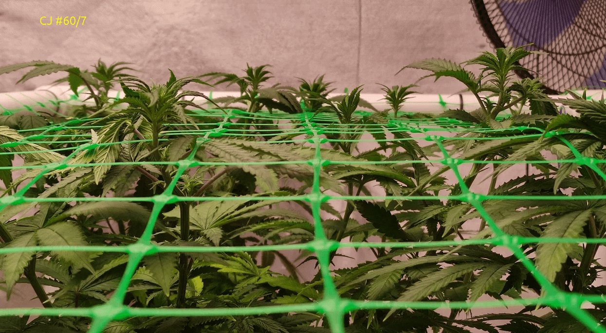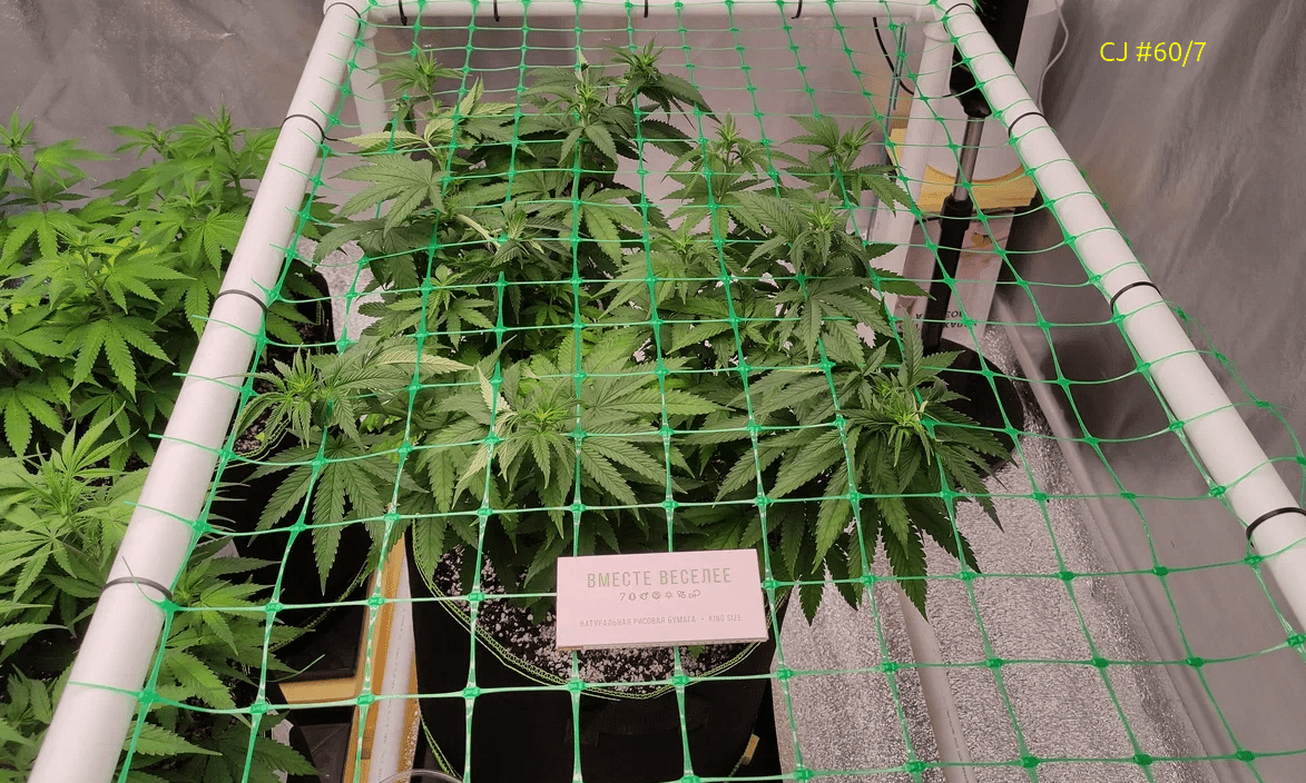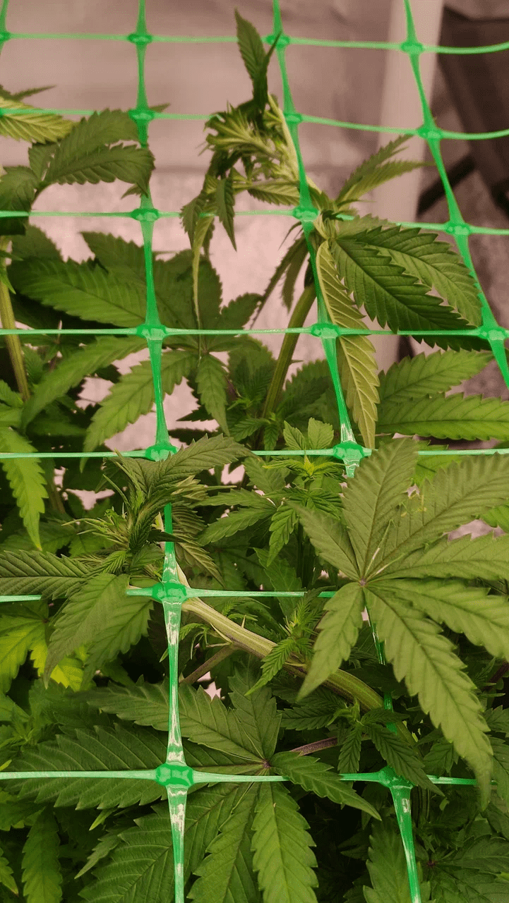 В прошлом году мой первый опыт со скрогом в ауте был не очень, т.к. непонятна механика дальнейшего развития. В этот раз иду против очевидного желания дать верхушкам уже расти над сеткой. Как только стретч затормозится, перестану заправлять, а пока пытаюсь дать доступ свету к нижним отросткам, чтобы подтянулись к сетке к этому моменту.
