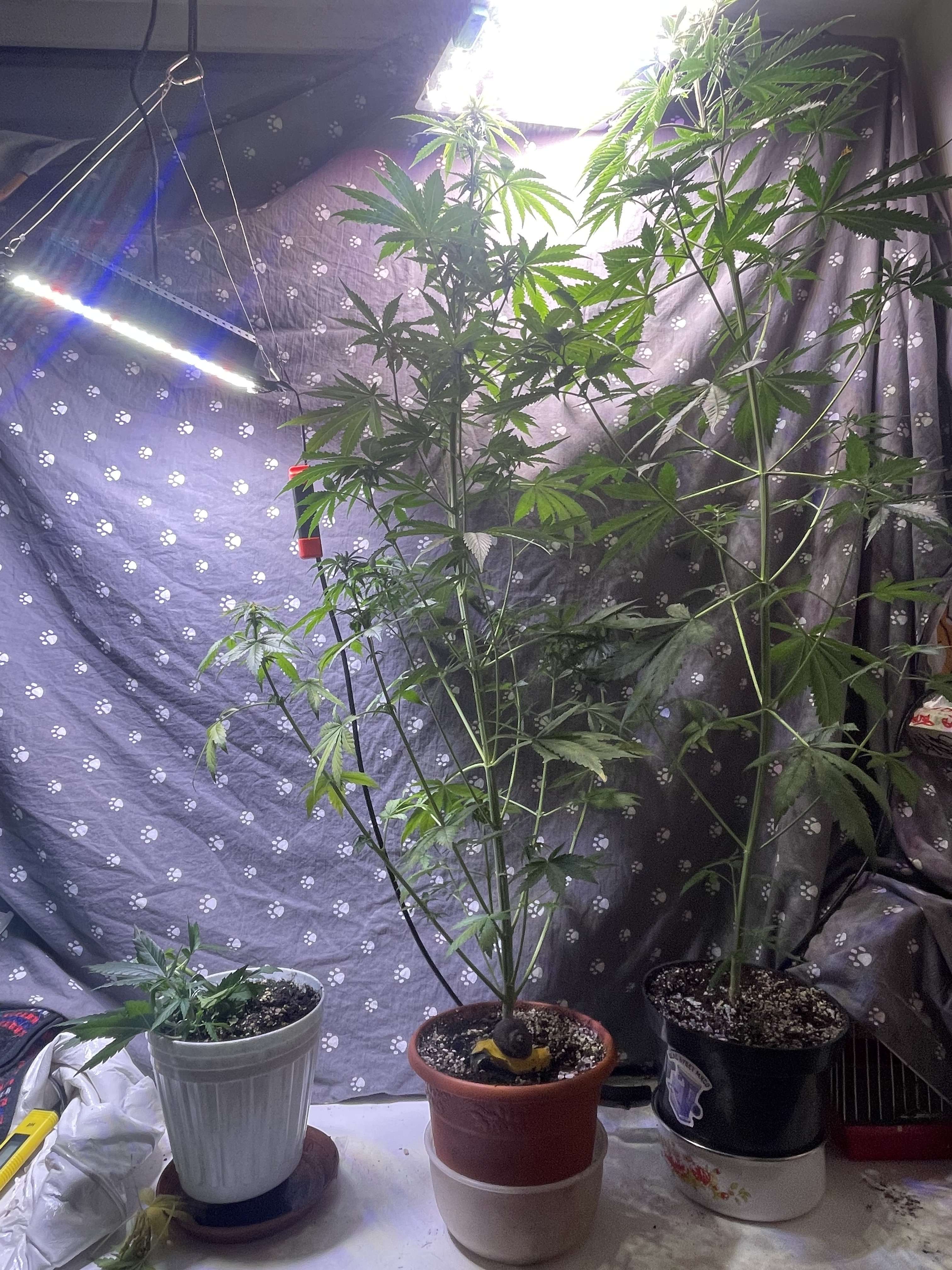 Все что фиолетовое есть на растихе это дефицит фосфора, сама себя ест. Замеряй пш почвы чтобы был в пределах нормы 6,5-7, в идеале еще и ппм компота замерять, чтобы все усваивалось как надо. Фосфор на цветении помогает формировать соцветия наращивать шишки, а калий в свою очередь способствует плотности шишек. Но у тебя еще проблема со светом так что бытовые лед лампочки в помощь. Я бы загнул по возможности основной ствол и сверху навесил хотя бы 100 ватт бытового леда что то типа 3шт по 30ватт. Ато по срокам уже цвести должен а у тебя он тормоза ловит, репы люблю-долблю наглядный пример что может быть при недостатке света, 15 недель роста и толком ничего не наросло. Хотя проблема решается действительно легко и дешево тем же бытледом, да это не топ но лучше чем ничего