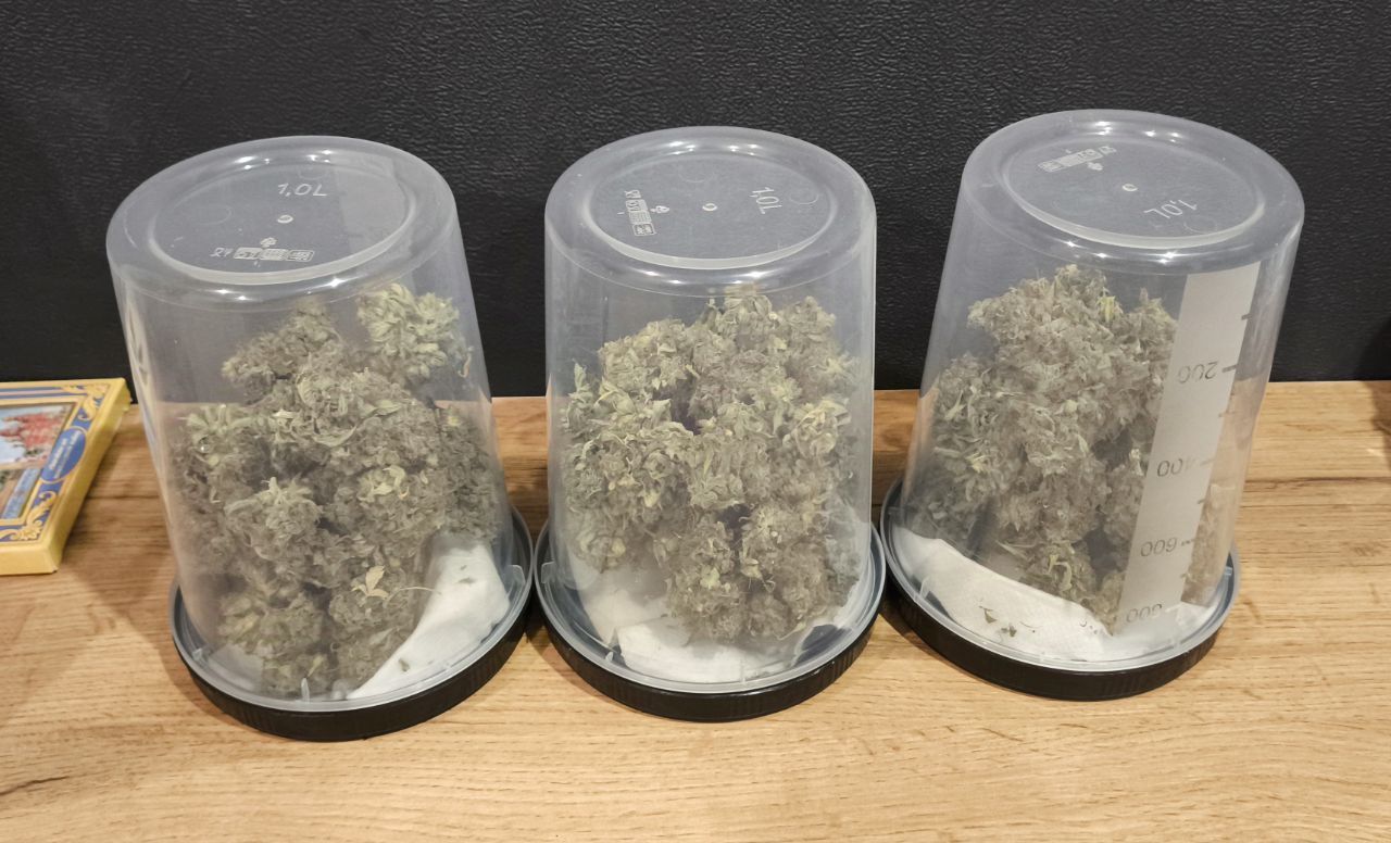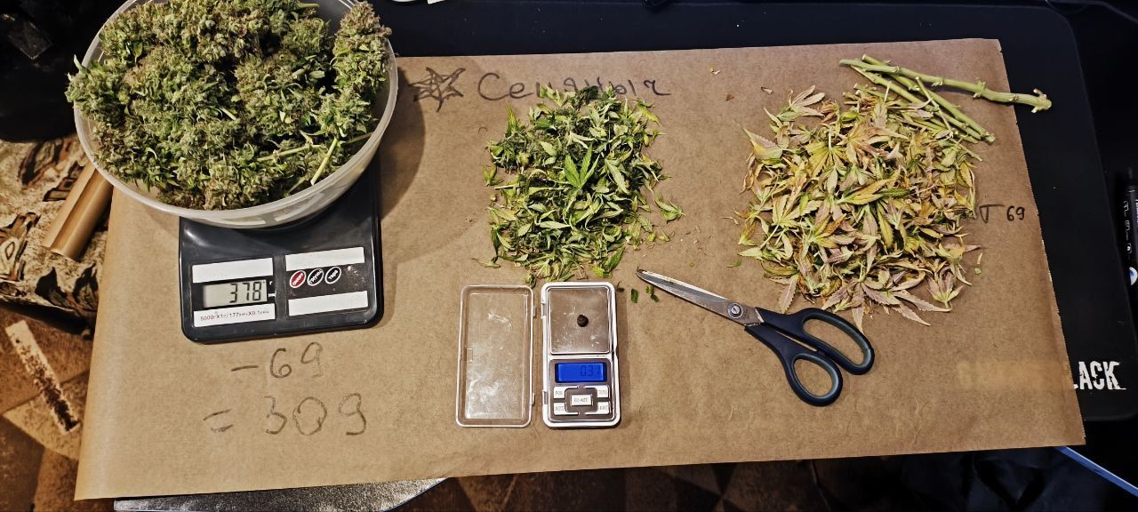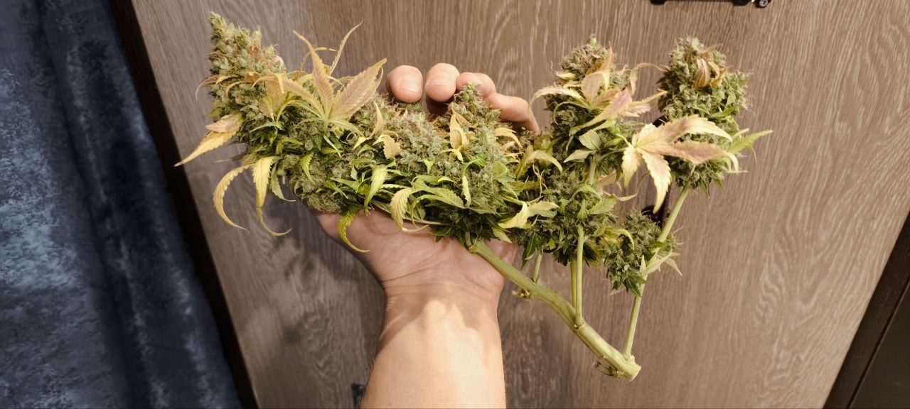 Уезжал. За растихой второй присматривали. Эта сушилась в боксе в простыне, из-за этого нарушился воздухообмен. Приехал я 31.10, а в боксе 24% влажности и 34 градуса. Шиши пересушены, хрустят. Но не пахнут и курятся без горлодера