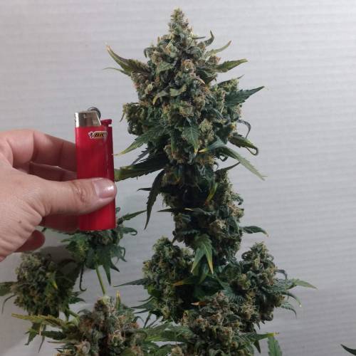 Гроверу удалось добиться хорошего результата – один кустик White Widow Auto принёс ему 70 грамм сушеных шишек. В мокром виде количество урожая составило 430 грамм. Весь жизненный цикл растения занял полных 11 недель. Никаких тренировок к кустику не применялось, за исключением лёгкой дефолиации.