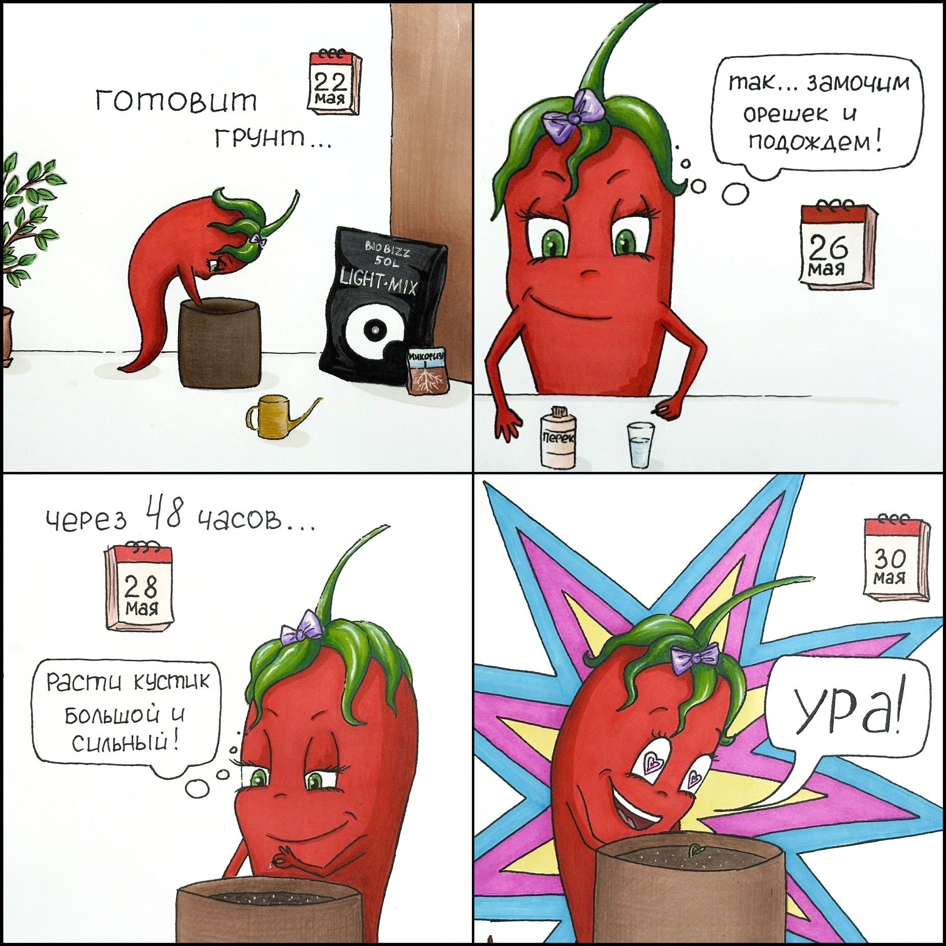 - через день вылез малюсенький корешок, посадила в землю и через два дня мадам вылезла уже без каски )