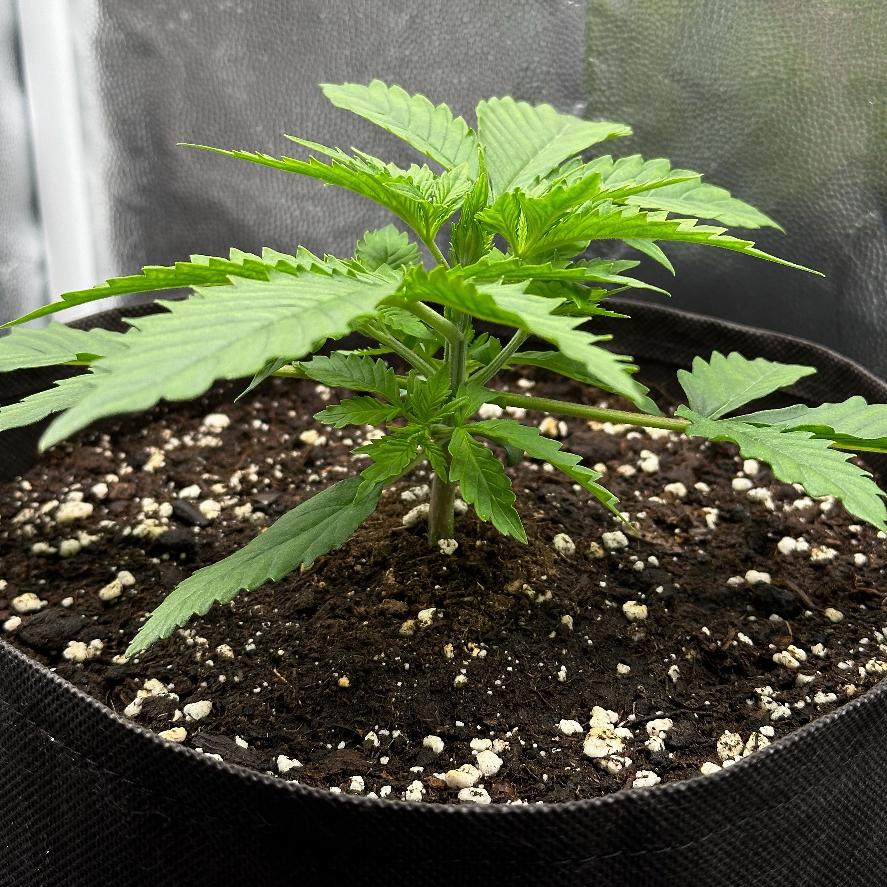 Оказалось, что Жвачке много света, из-за этого немного неравномерный цвет листьев и короткие междоузлия. Немного уменьшила мощность лампы. Лампа у меня с минифермера quantum board 60w 1.9