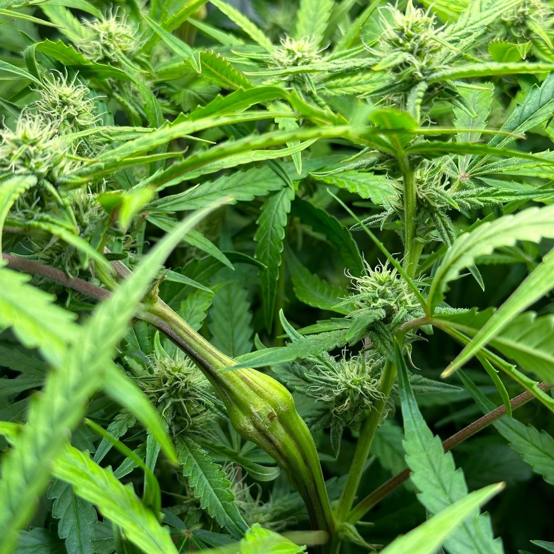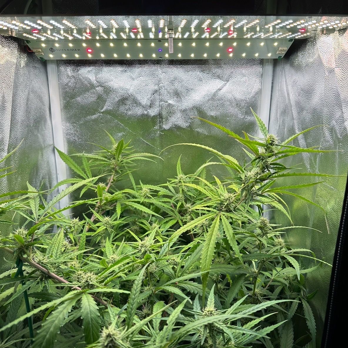 Из-за того, что она сильно тянулась к свету, и нарастила длинные междоузлия, было принято решение докупить бустер на досвет. С этой целью я, конечно же, отправилась на сайт минифермер 😁 купила одну плашку на 20вт для усиления цветения и выработки смол.