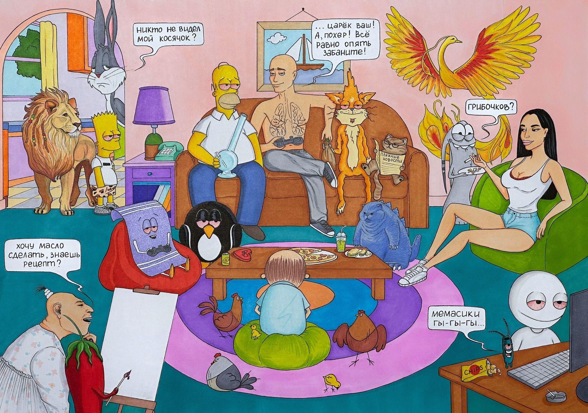 Ну и конечно я не могла не нарисовать финальную сцену 😁 @Растаманыч прости, может ты нас не ждал и не хотел гостей, но мы решили по другому 😄 хотелось нарисовать каждого, кто так или иначе отметился в старом репорте по жвачке ❤️ конечно прям всех всех нарисовать не получилось, лист не резиновый 😅 но я старалась 🥰 в общем, вечеринка получилась улёт 😁 надеюсь вам она понравилась также, как и мне 😉